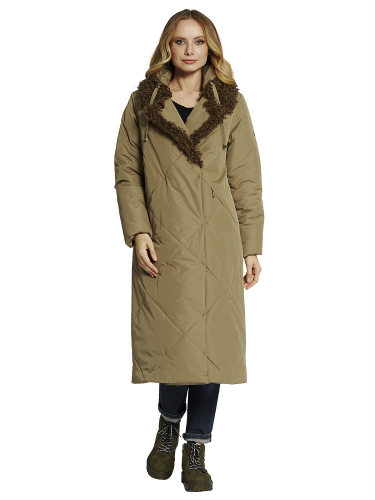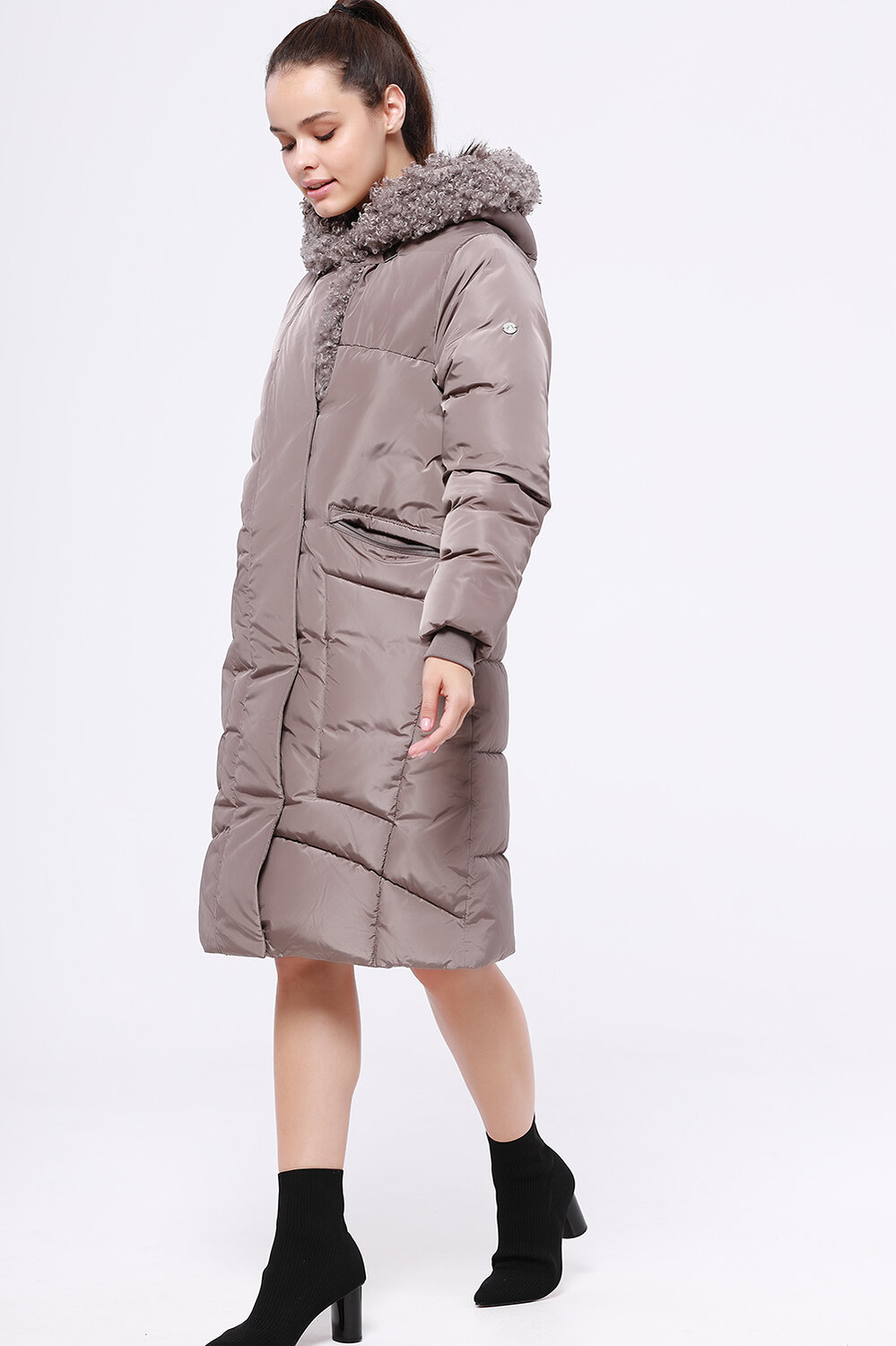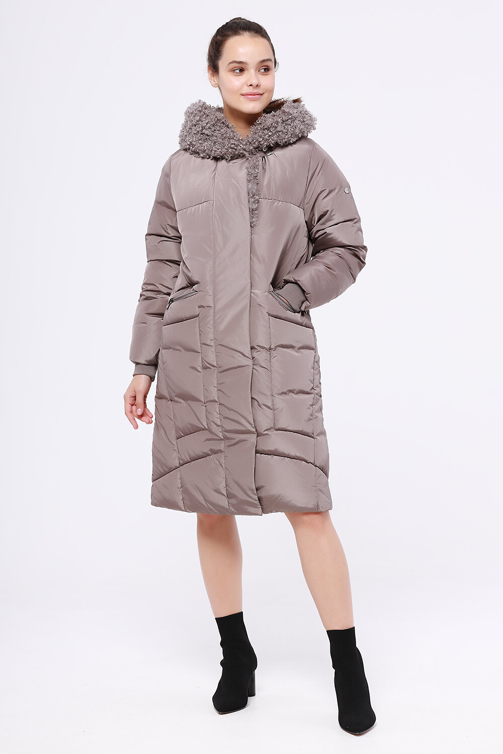 Теплое зимнее пальто от российского производителя D’imma Fashion Studio, с отделкой капюшона искусственным мехом "под козлик". Прорезные карманы на молнии, капюшон не отстегивается. Декоративная отстрочка на полочке. Центральная застежка на молнию и кнопки, декоративная пуговица на вороте. Широкий размерный ряд, в наличии большие размеры.