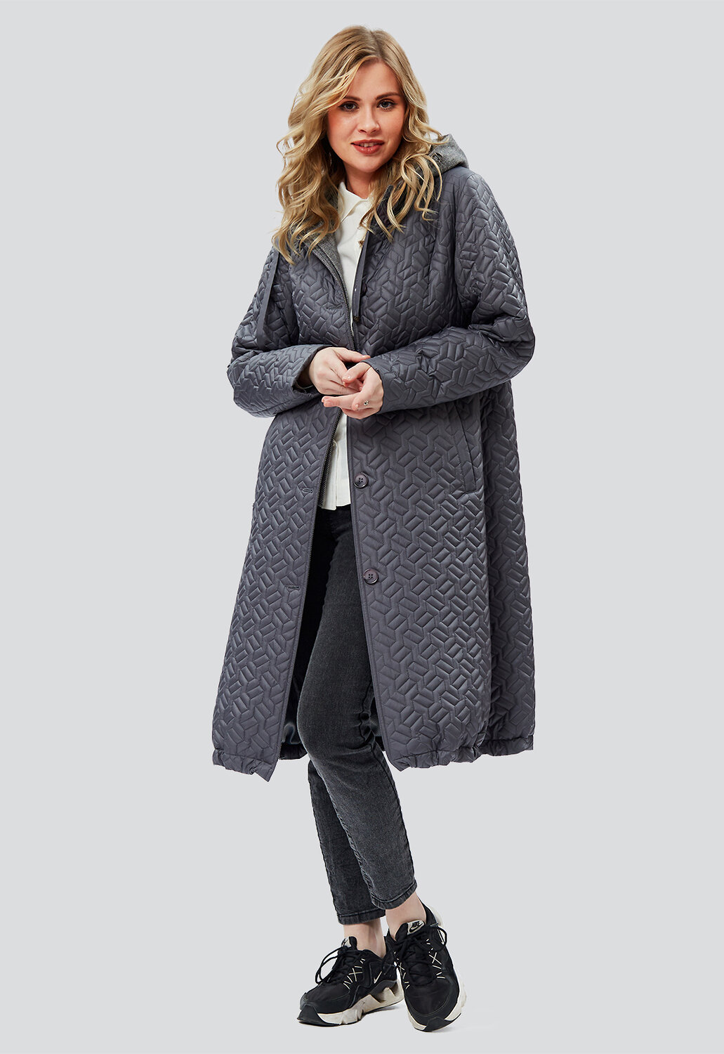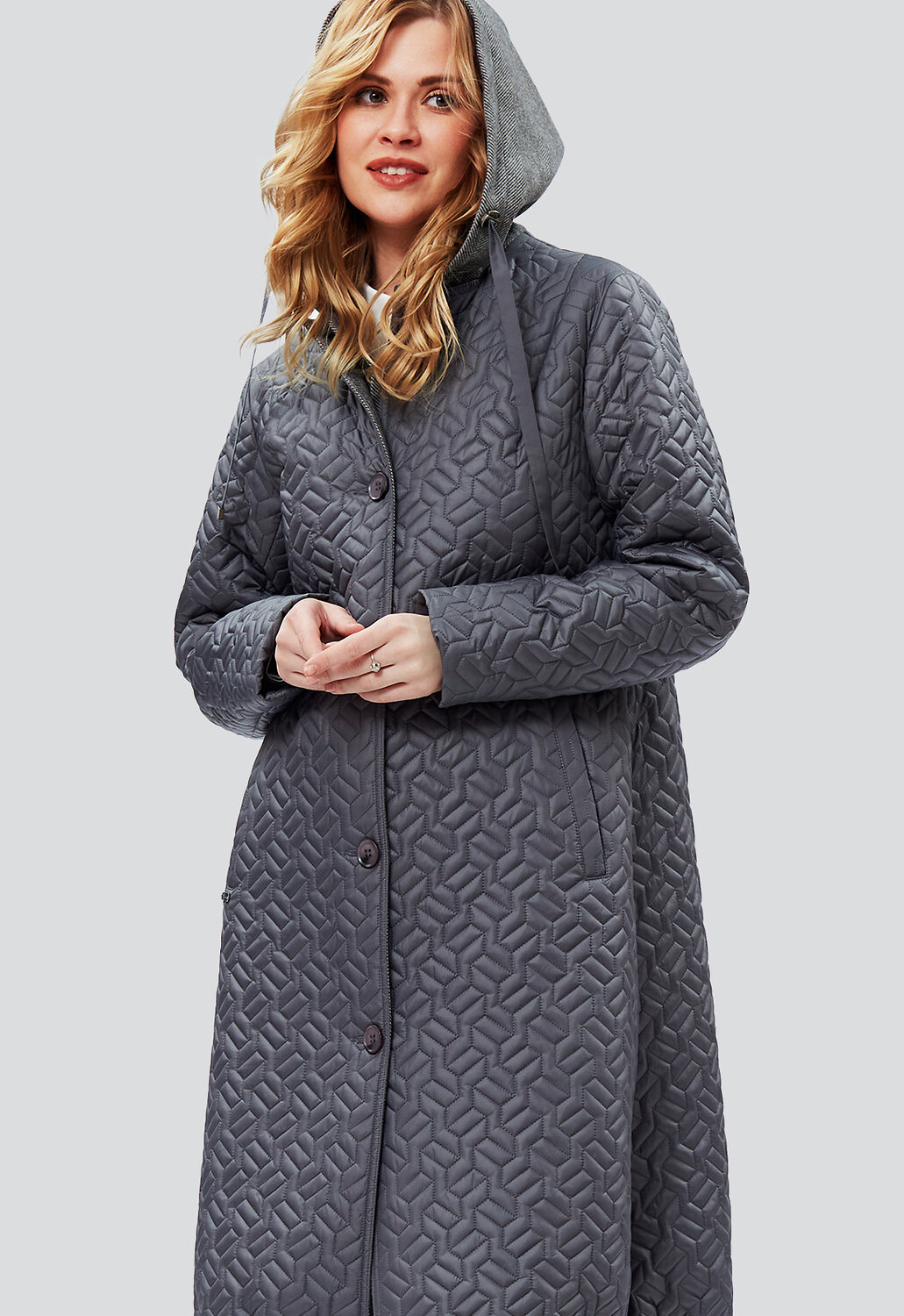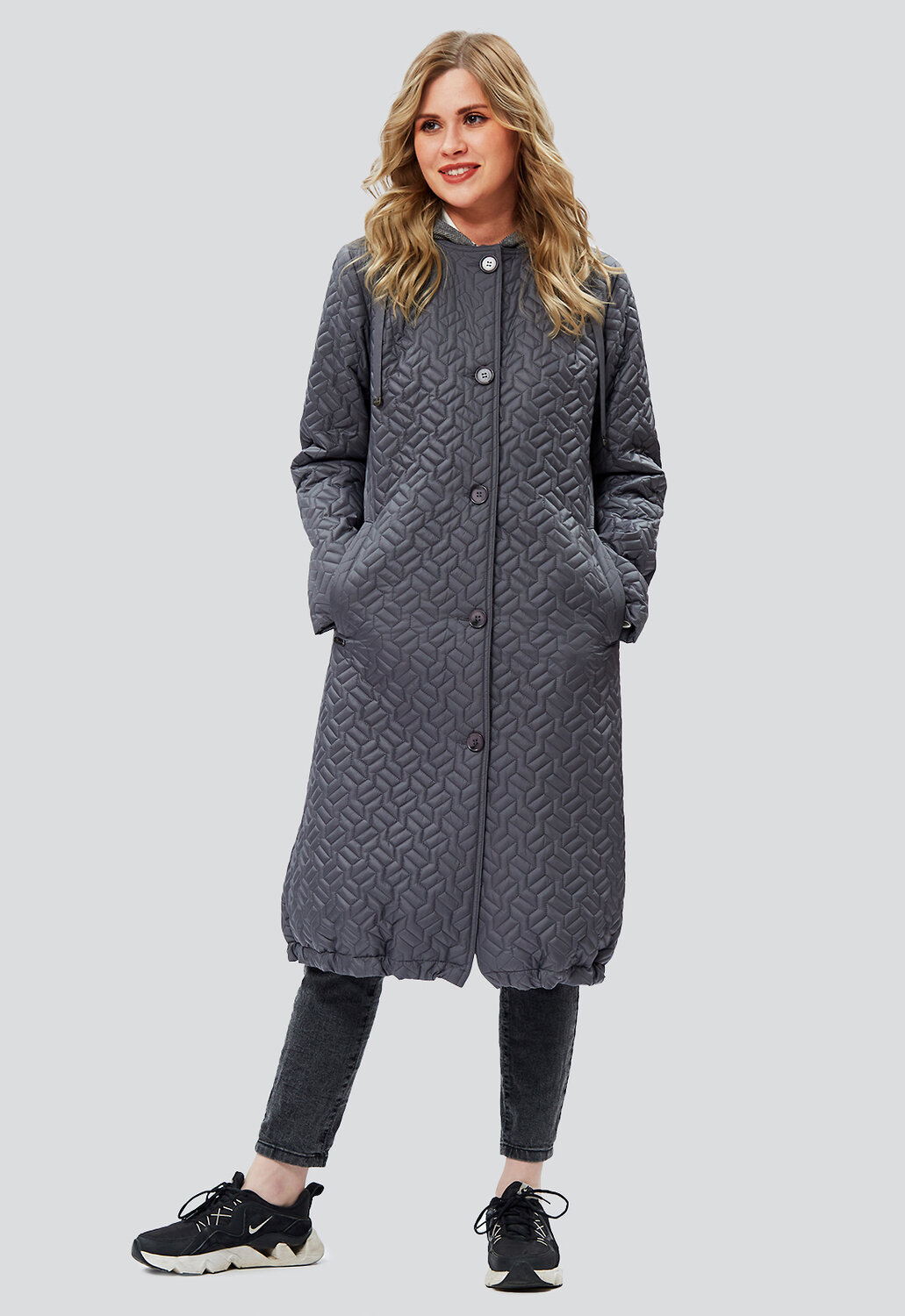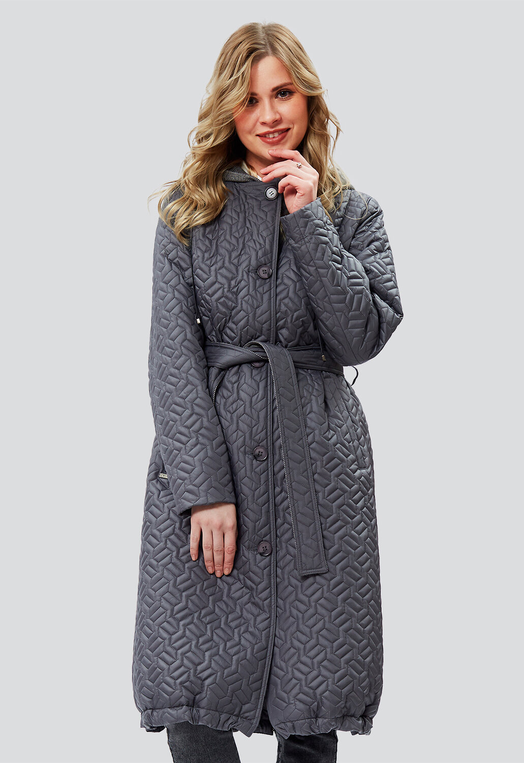 Дизайнерское, невероятно модное, стеганое демисезонное пальто А-силуэта из ткани с водоотталкивающей пропиткой в стиле Бохо от российского производителя D’imma Fashion Studio комфортной длины с утеплителем нового поколения ТерМакс - необходимая часть гардероба, позволяющая подчеркнуть стиль, имидж и даже настроение женщины. Благодаря особой обработке каландером, утеплитель тонкий и лёгкий, сильнее сохраняет тепло, поэтому пальто теплое и легкое. Модель с застежкой на пуговицы с отложным бортами и манишкой необычной конструкции внутри, переходящей в капюшон подчеркивают оригинальность и небанальность дизайнерской задумки. Манишка, капюшон и подборта выполнены из мягкой, контрастной пальтовой ткани-компаньона. Борта можно расстегнуть и получить интересное базовое решение пальто с лацканами контрастного цвета и ткани. Прорезные удобные карманы с листочками завершают прекрасную симфонию модели. Рукав с подманжетом, который можно подвернуть, сделать короче и оформить манжет. Капюшон с функциональным шнурком. По низу пальто вставлены кулиски, регулирующие объем и теплосохранение. Пояс делает фигуру более стройной и подчеркивает женственность, а несъемный капюшон защищает от ветра и дождя. Есть большие размеры. Пояс в комплекте. Пальто женское демисезонное - это идеальное сочетание модного дизайна и практичности. А-образный силуэт и ничего лишнего, что может помешать Вам любоваться окружающим миром по дороге на работу, на прогулке в парке или по городу. Не взирая на причуды природы, в такой модели Вы будете выглядеть женственно и неповторимо. Можно дополнять яркими аксессуарами и менять образ под настроение. Разнообразные версии – ключ к созданию линейки модных, индивидуальных луков. Не упустите возможность приобрести наше демисезонное женское пальто и стать настоящей модной леди!