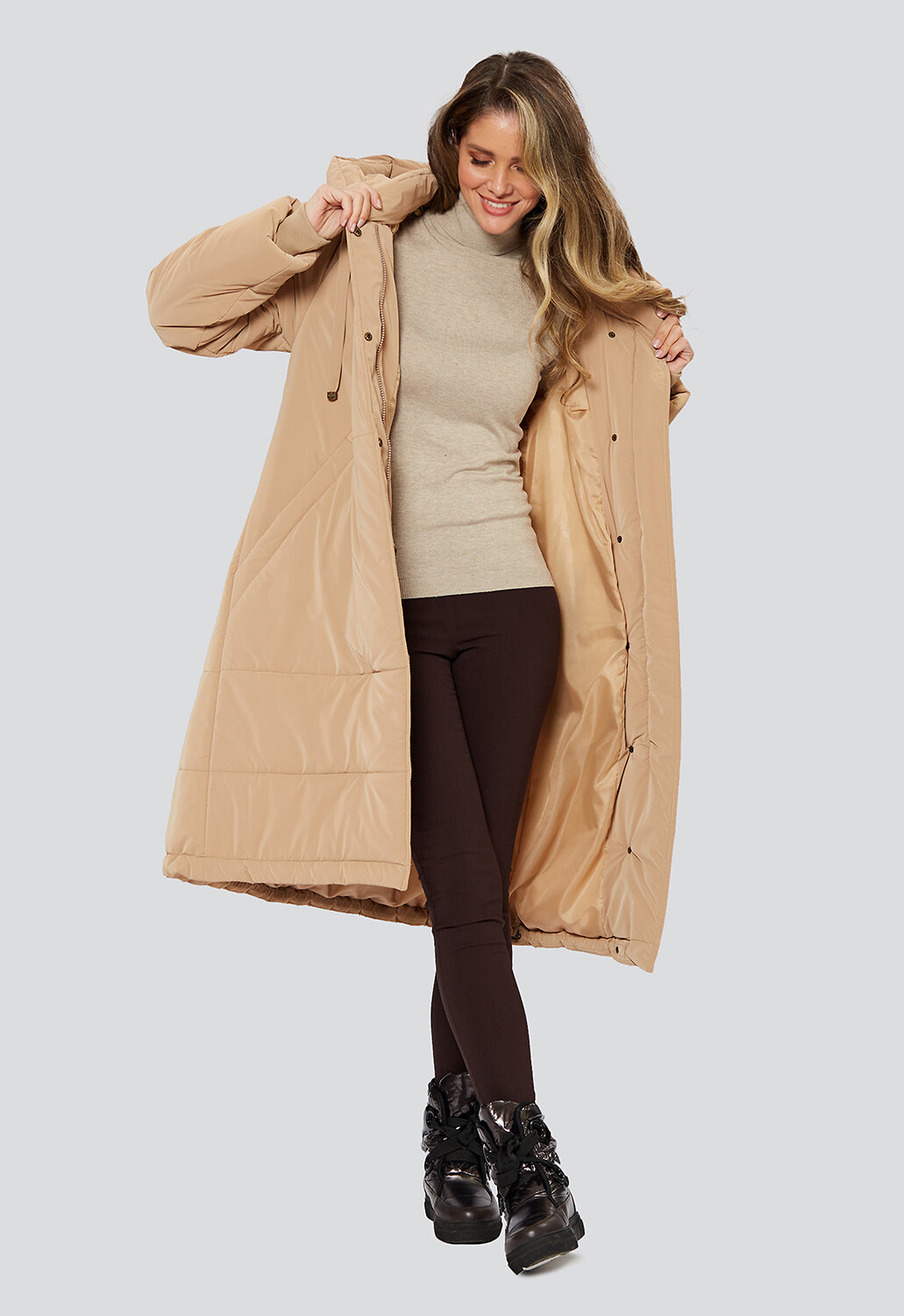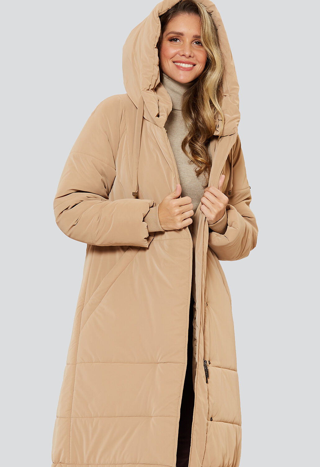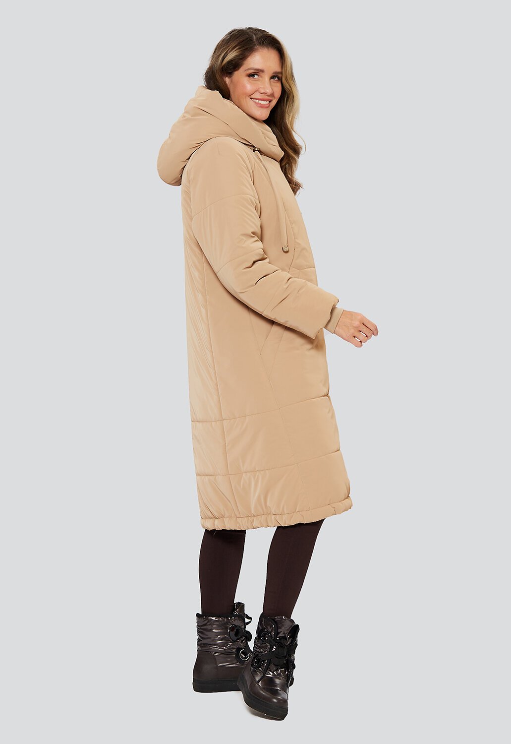Модное зимнее пальто от D’imma Fashion Studio из полуматовой ткани с полиуретановым напылением с водоотталкивающей пропиткой на утеплителе ТермМакс 300 г/м. Теплое стеганое с застежкой на двухзамковую реверсивную молнию и кнопки с внешним и внутренним ветрозащитными клапанами. Карманы на кнопках в рельефных швах дополняют образ и создают комфорт. Воротник стойка, переходящий в капюшон со шнурком, регулирующим объем капюшона. Рукав с манжетой, позволяющей регулировать длину рукава.