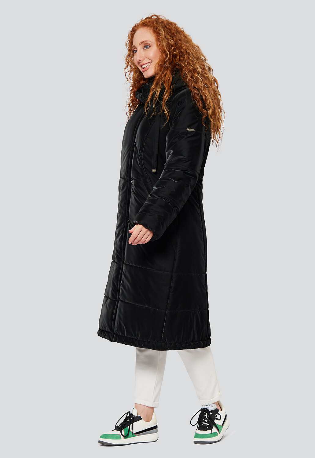 Модное зимнее пальто от D’imma Fashion Studio из полуматовой ткани с полиуретановым напылением с водоотталкивающей пропиткой на утеплителе ТермМакс 300 г/м. Теплое стеганое с застежкой на двухзамковую реверсивную молнию и кнопки с внешним и внутренним ветрозащитными клапанами. Карманы на кнопках в рельефных швах дополняют образ и создают комфорт. Воротник стойка, переходящий в капюшон со шнурком, регулирующим объем капюшона. Рукав с манжетой, позволяющей регулировать длину рукава.