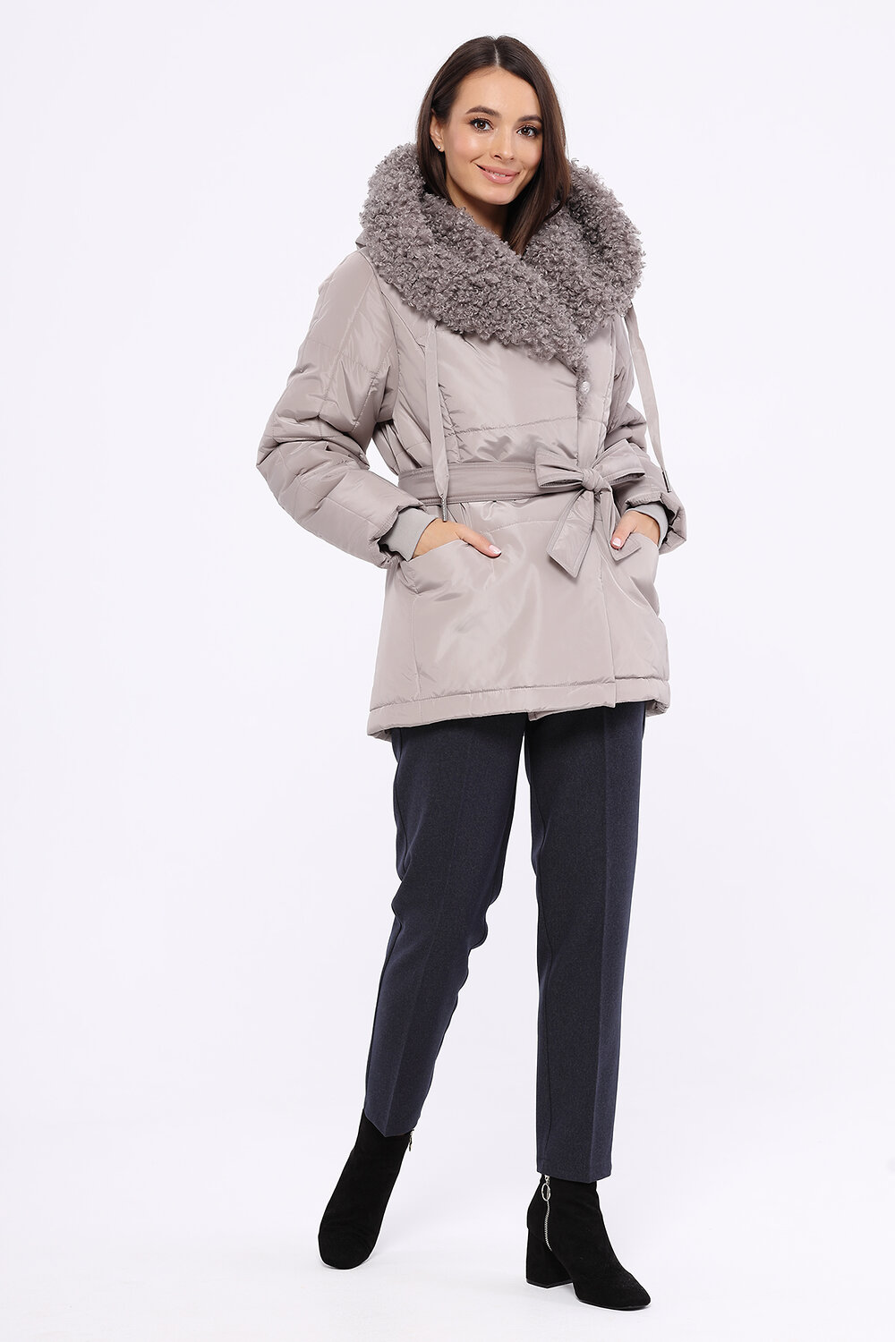 Комфортная куртка прямого силуэта из ткани мемори с водоотталкивающей пропиткой и суперсовременным утеплителем ТермМакс. За дополнительную защиту от непогоды отвечает капюшон с цельнокроенной стойкой, который можно красиво разложить по типу воротника-апаш. Капюшон внутри отделан супермодным шелковистым Эко мехом "под козлик". Модель с застежкой на молнию и кнопки. Рукав с трикотажной манжетой, помогающей регулировать длину рукава. Модель с просторными карманами на кнопках. Пояс в комплекте.