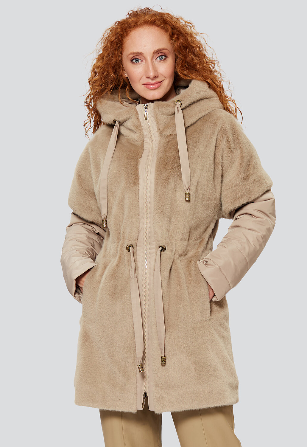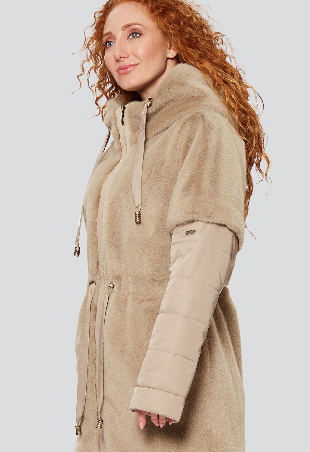 Шикарное, невероятно женственное, нарядное демисезонное пальто комфортной длины в Casual-стиле от российского производителя D’imma Fashion Studio прямого силуэта с утеплителем нового поколения ТерМакс - необходимая часть гардероба, позволяющая подчеркнуть стиль, имидж и даже настроение женщины. Благодаря особой обработке каландером, утеплитель тонкий и лёгкий, сильнее сохраняет тепло, поэтому пальто теплое и очень легкое. Модель свободного кроя с цельнокроеным комбинированным рукавом и несъемным капюшоном из супермодного Эко меха " под норку", Рукава выполнены из стеганной ткани. Их можно подвернуть, сделать короче и оформить манжет. За дополнительную защиту от непогоды отвечает воротник-стойка, переходящий в несъемный капюшон со шнурком, регулирующим объем капюшона. Модель с застежкой на декоративную, но в то же время функциональную двухзамковую реверсную молнию и поясом-кулиской, формирующим приталенный силуэт. Пальто с просторными карманами с листочками, застегивающимися на кнопки, которые завершают зимнюю симфонию модели. Есть большие размеры. Прямой силуэт и ничего лишнего, что может помешать Вам любоваться окружающим миром по дороге на работу, на прогулке в парке или по городу. Не взирая на причуды природы, в такой модели Вы будете выглядеть женственно и неповторимо. Можно дополнять яркими аксессуарами и менять образ под настроение. Разнообразные версии – ключ к созданию линейки модных, индивидуальных луков.