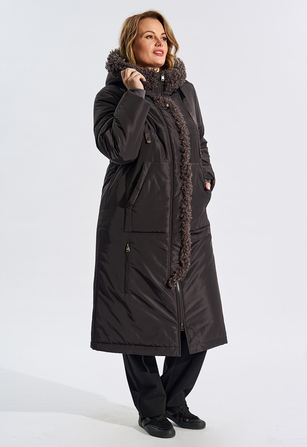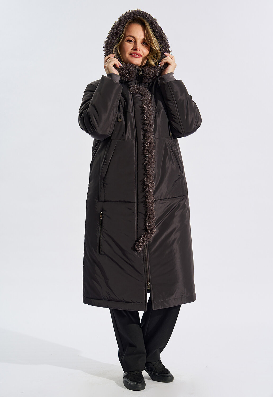 Модное пальто прямого силуэта из ткани мемори с водоотталкивающей пропиткой и суперсовременным утеплителем ТермМакс, которое высоко востребовано среди современных женщин. Особая обработка каландером делает утеплитель тонким, легким и несравненно теплым. Наши модельеры и конструкторы с тщательностью продумывали форму, крой и цветовое решение при создании этой модели на нашем производстве в Москве. За дополнительную защиту от непогоды отвечает капюшон с цельнокроеной стойкой, который можно красиво разложить по типу воротника-апаш. Капюшон внутри отделан супермодным шелковистым Эко-мехом "под козлик", что свидетельствует о высоком уровне дизайна и проработки изделия. Модель с застежкой на двухзамковую реверсивную молнию, закрытую ветрозащитным клапаном на кнопках. Рукав с трикотажной манжетой, помогающей регулировать длину рукава. На полочке три функциональных кармана. Сзади шлица на кнопках.