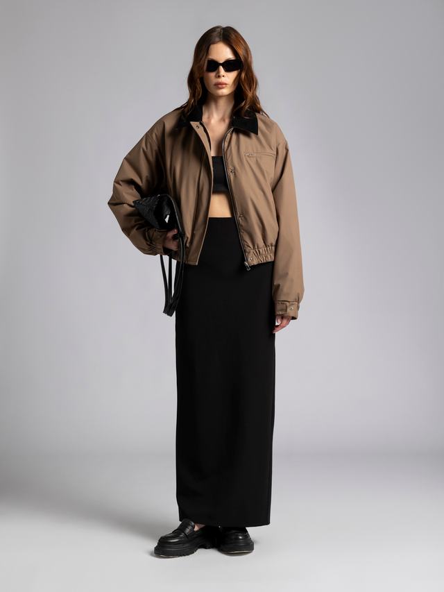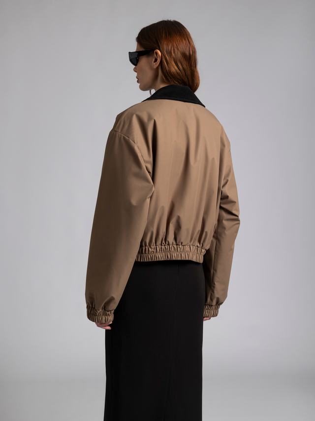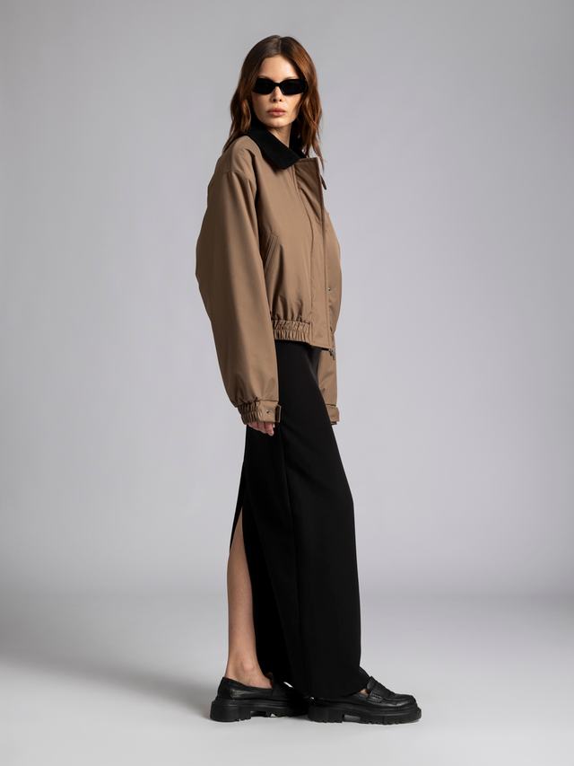 Бомбер «URBAN» вдохновлен городом и офисными буднями, которые мы захотели разнообразить. Неклассическая и элегантная модель — вельветовый воротник, длина 55 см и регулирующиеся манжеты.