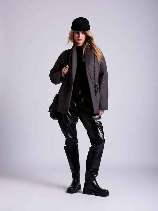 Сочетание утеплителя «изософт» и водооталкивающей пропитки позволяет строить планы несмотря на погоду. Благодаря спущенному плечу и оверсайз крою можно комфортно ность пиджаки и свитера. С помощью кулиски регулируйте силуэт от прямого до приталенного.