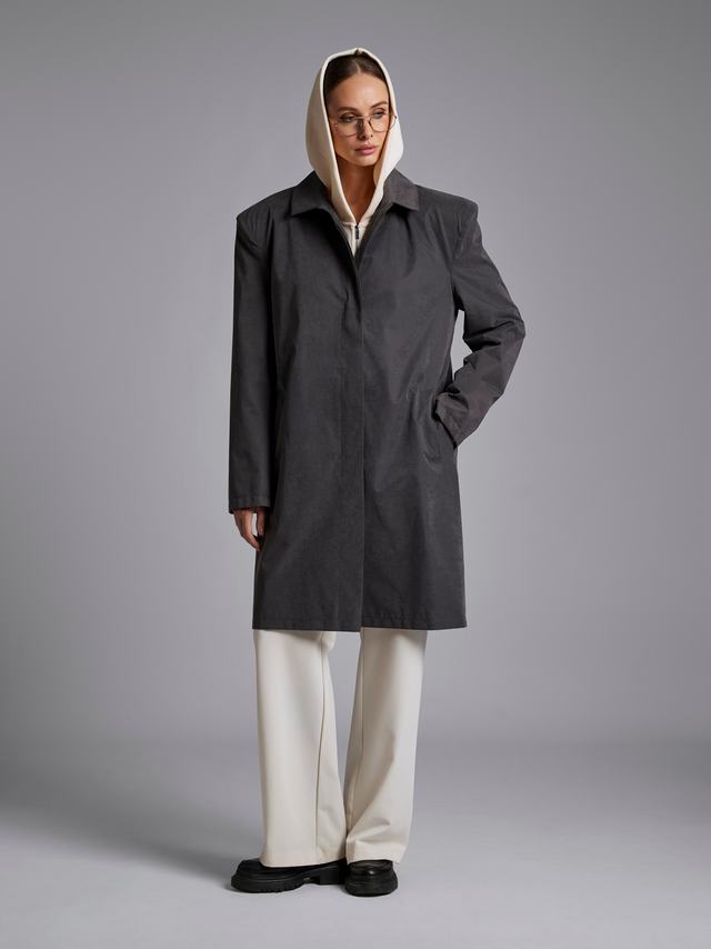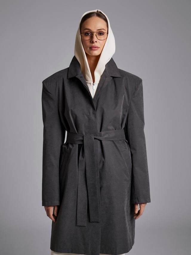 Эффектный плащ, который вдохновлен трендом на широкие плечи.