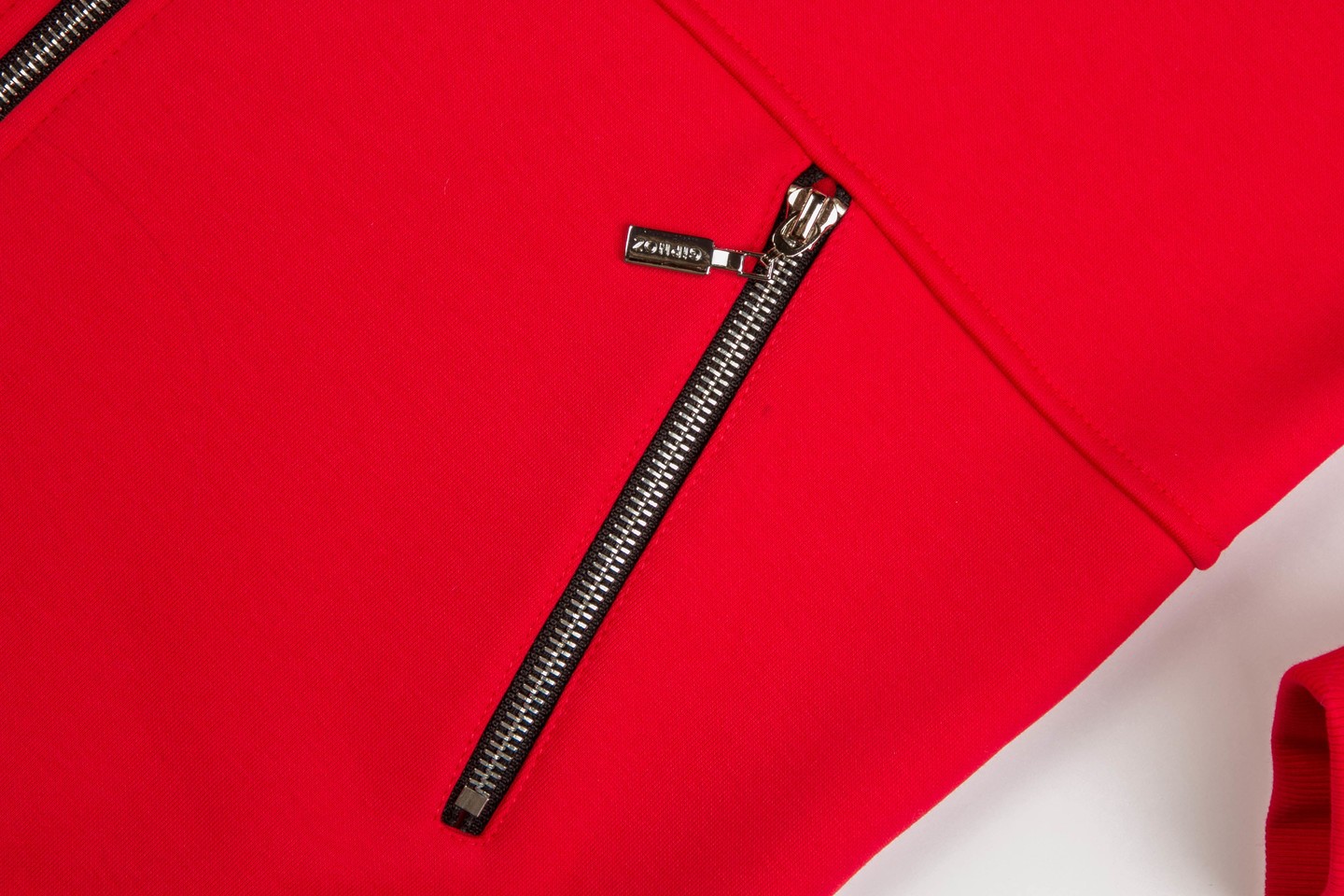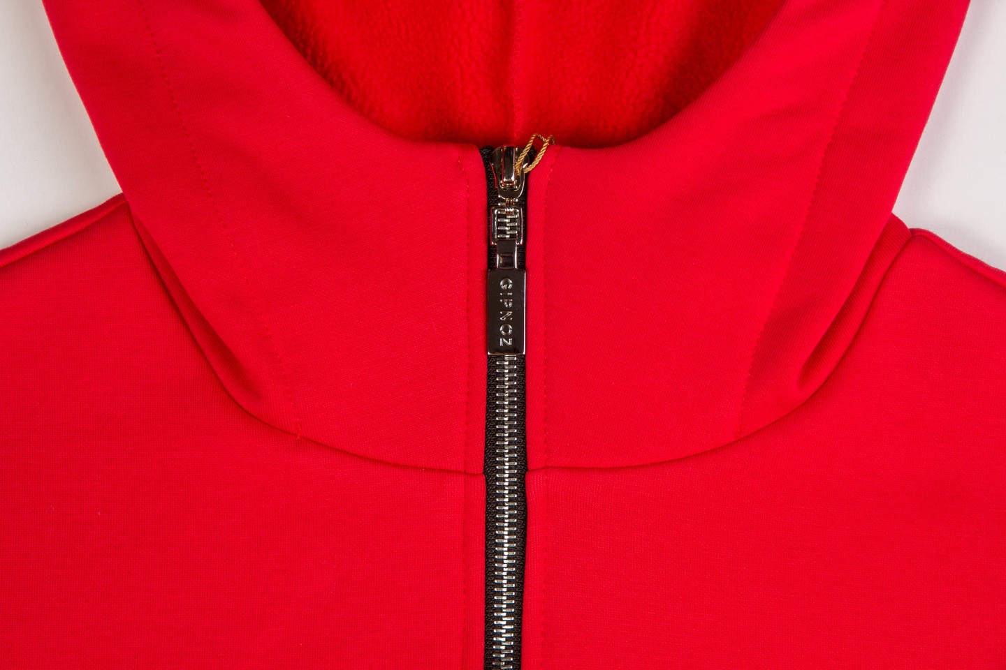 «оверсайз» с капюшоном. Застежка и карманы на «молниях». На спинке