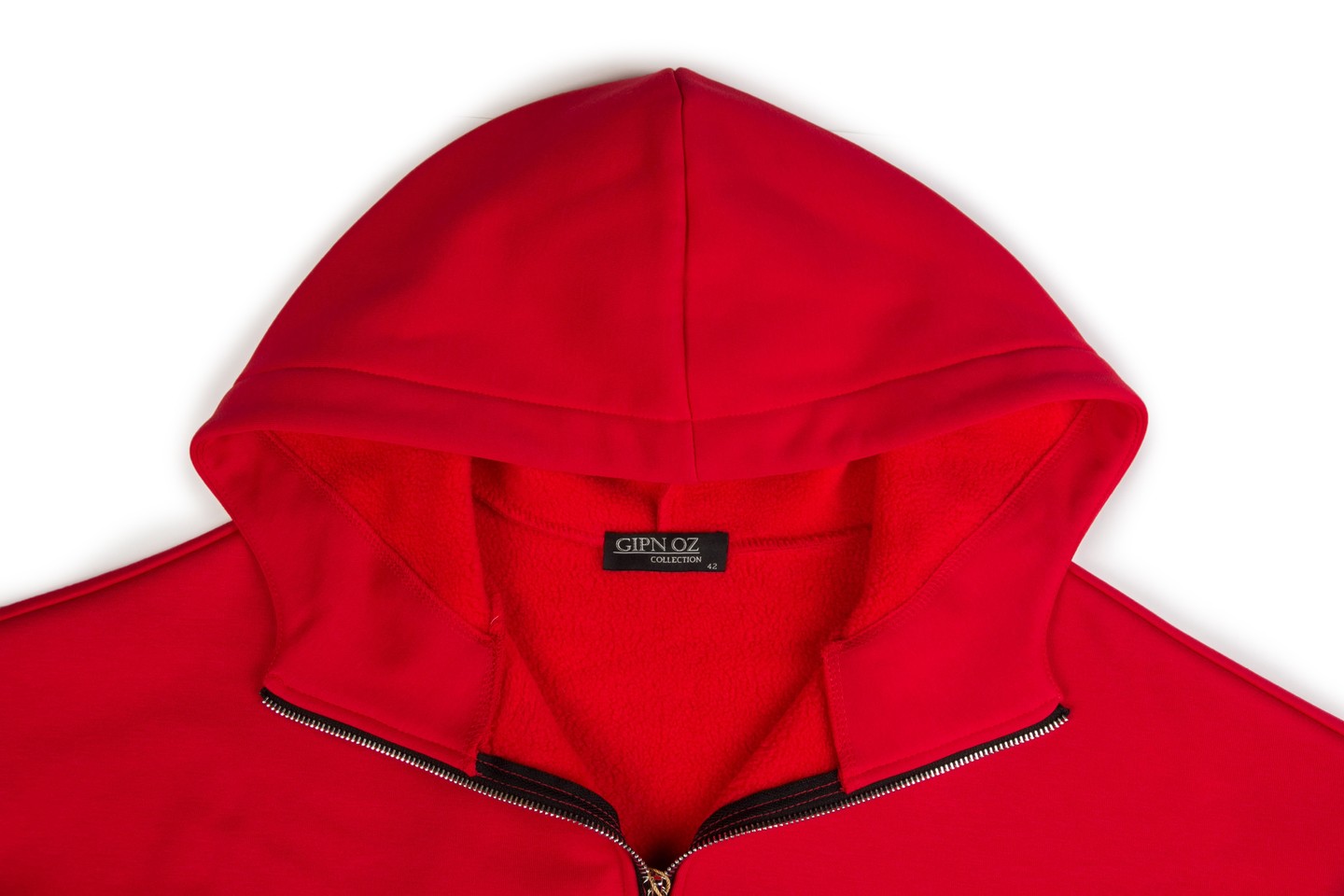 «оверсайз» с капюшоном. Застежка и карманы на «молниях». На спинке