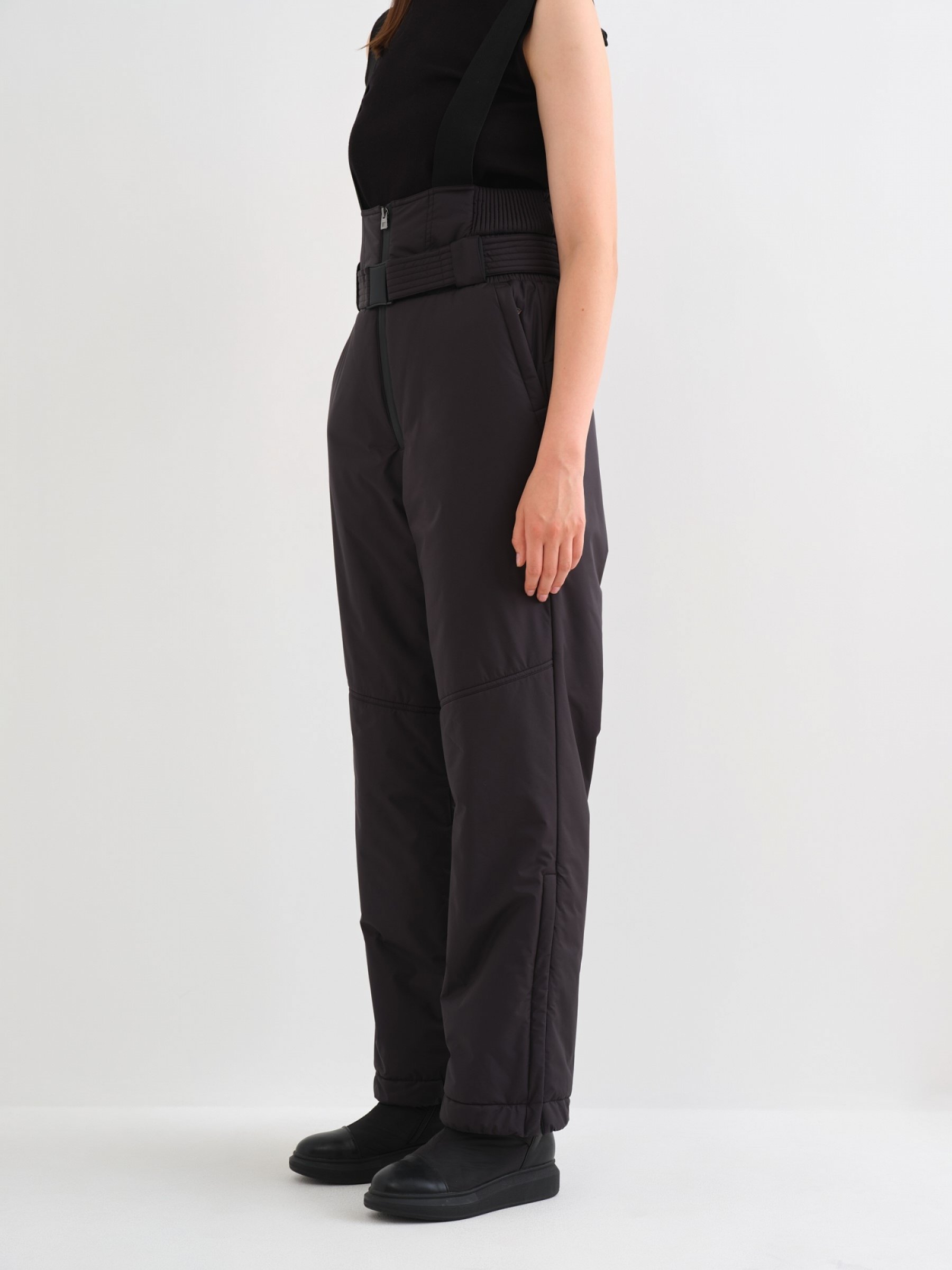 Утепленные брюки в горнолыжном стиле для спорта или активных будней. Выверенная архитектура для максимального тепла и комфорта: высокая посадка по фигуре, регулируемые подтяжки и пояс на прочном металлическом замке, внешняя регулируемая застежка по нижней части брючин. Свободное облегание ног позволяет надеть еще один слой, например, термобелье. Плотная ткань с пропиткой отталкивает воду и грязь. Для идеального дуэта рекомендуем укороченные пуховики из спортивной линейки CONSO.