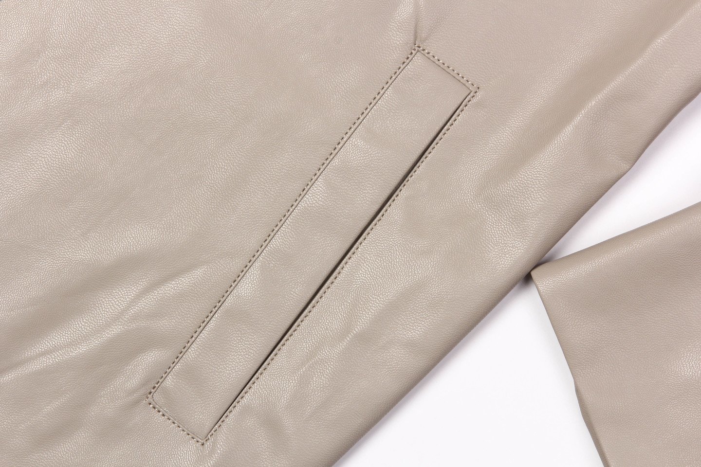 Экокожа все также продолжает оставаться в главных фэшн-трендах этого сезона. И одним из трендовых предметов гардероба, представленных в кожаном исполнении будет жакет. Стильный, универсальный и слегка дерзкий жакет свободного кроя и спущенной линией плеч. Английский воротник, застежка на петли и пуговицы. На переде карманы с листочкой, на рукавах декоративные паты с пуговицами. Талию можно подчеркнуть с помощью пояса. бежевый