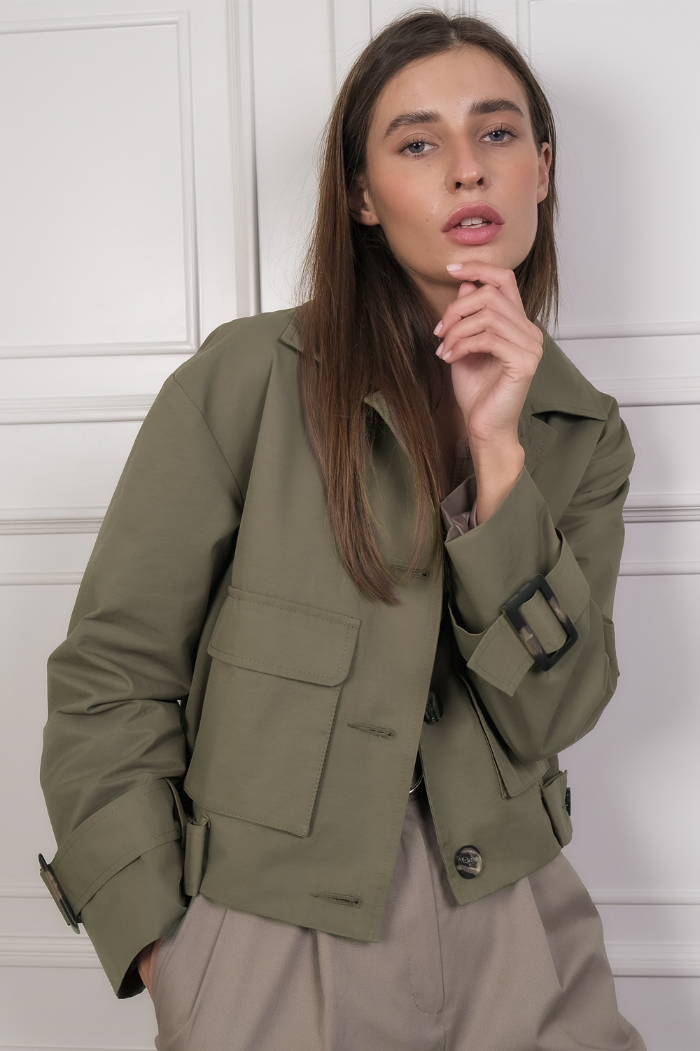 ст. цена3842руб.! Ветровка оверсайз с карманами из хлопка хаки