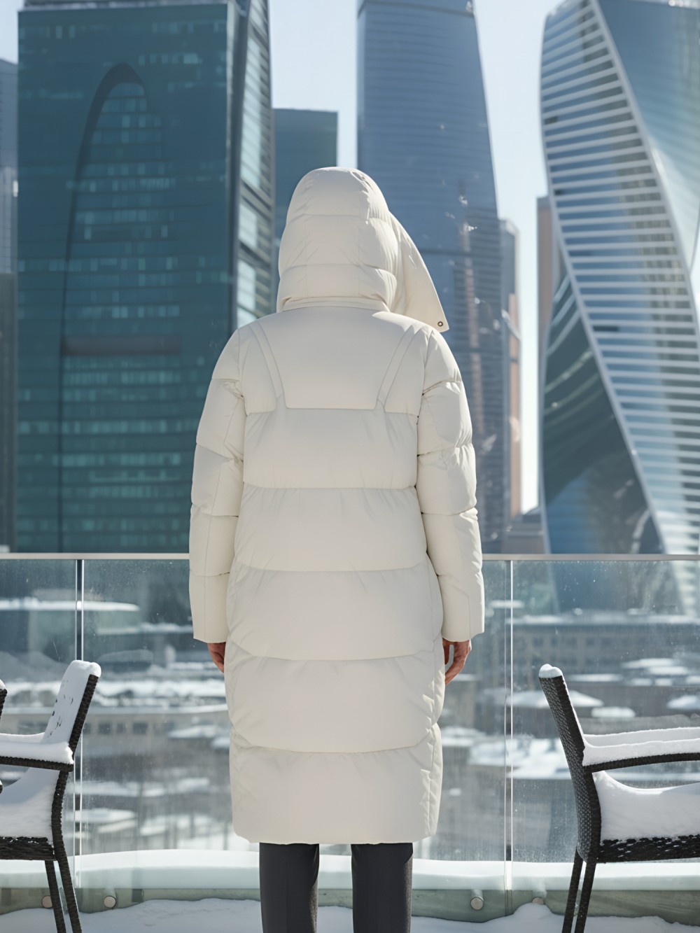 Элегантный прямой и свободный покрой с удлиненной длиной ниже колена создает утонченный силуэт, а съемный капюшон добавляет практичности и стиля. Воротник-стойка не только защищает от холода, но и придает дополнительную изысканность. Удобные внутренние карманы с магнитными застежками идеально подходят для хранения мелочей, которые всегда должны быть под рукой.