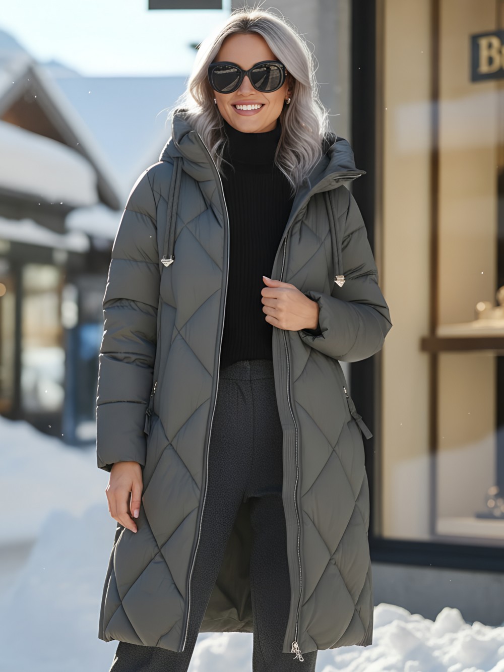 Длина до колена и удлиненный подол придают пальто элегантный и стильный вид, идеально подходя как для офисных будней, так и для повседневных прогулок. Удобный капюшон с фиксатором и внутренние карманы сделают использование пальто еще более комфортным. Двойная молния и прорезные карманы на кнопке добавляют функциональности и современного стиля.