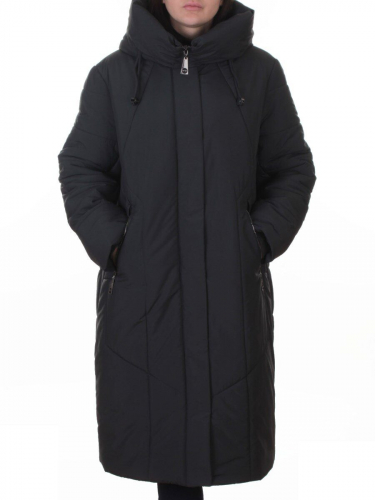 309 BLACK/BLACK Пальто зимнее стеганое женское (200 гр. холлофайбер, натуральная норка)