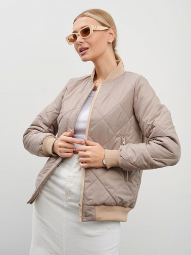 Легкий стеганый бомбер с трикотажным воротником и манжетами на рукавах. Модель застегивается на молнию и дополнена двумя боковыми карманами на молнии.