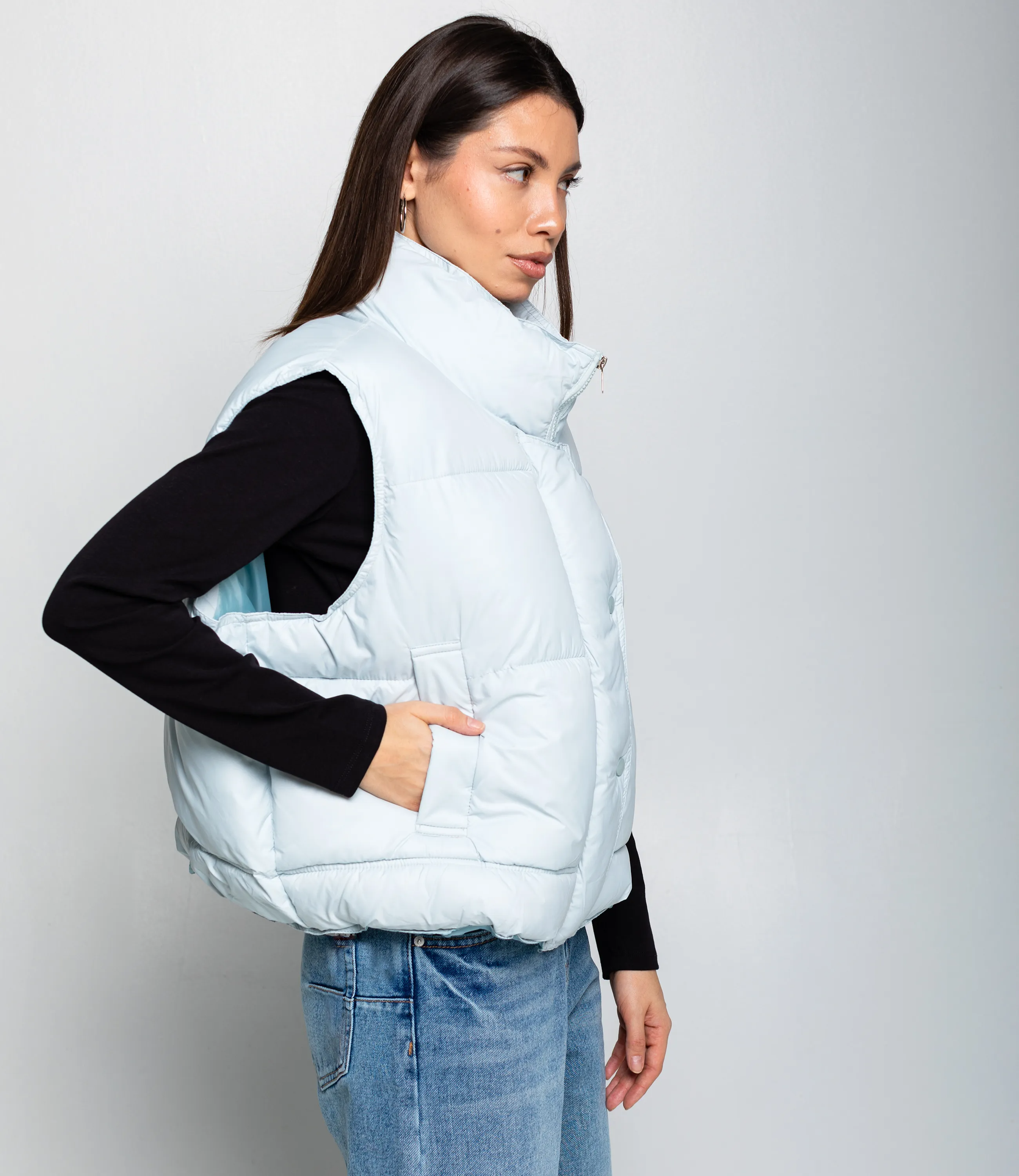 Жилет – это одежда, которая подчеркивает привлекательность каждой женщины. Этот жилет выполнен из ткани, состоящей на 100% полиэстер. Короткий стёганый жилет без рукавов, выполнен из гладкой ветронепроницаемой ткани с мягкой, объёмной набивкой внутри, создающей пухлую, приподнятую структуру. Модель с высоким горлом-стойкой, которое плотно обрамляет шею и дополнительно утепляет верхнюю часть корпуса; застёжка спереди скрытая планкой с крупными обтянутыми пуговицами, обеспечивающими цельный визуальный ряд. Фасон прямой и укороченный, с завышенной линией низа, где расположен регулируемый шнурок со стопперами, позволяющий зафиксировать посадку по талии и придать силуэту более собранный вид. Боковые входные карманы интегрированы в швы и усилены прострочкой, обеспечивают практичность без нарушения объёма! Рост 164, 83-61-89.