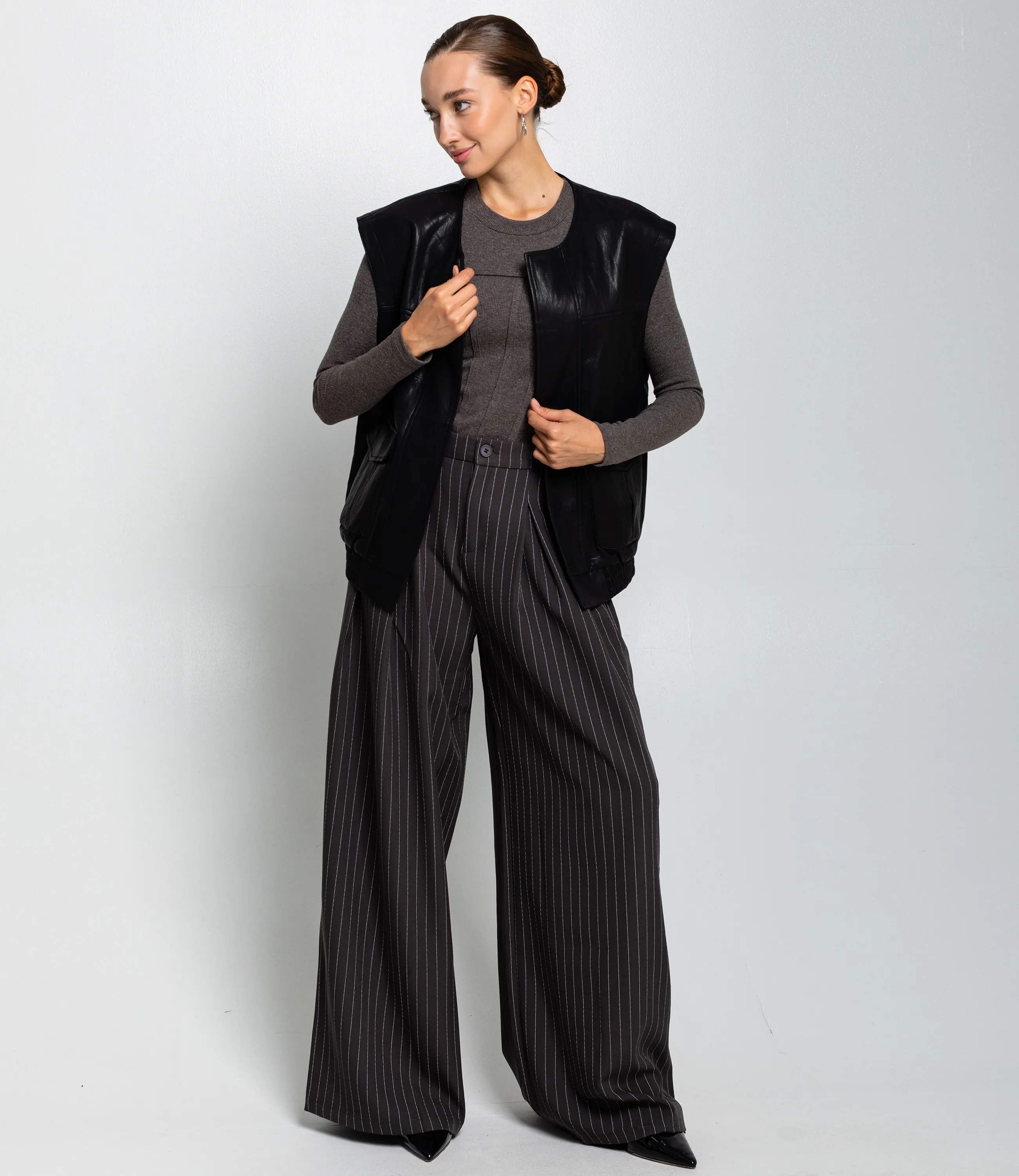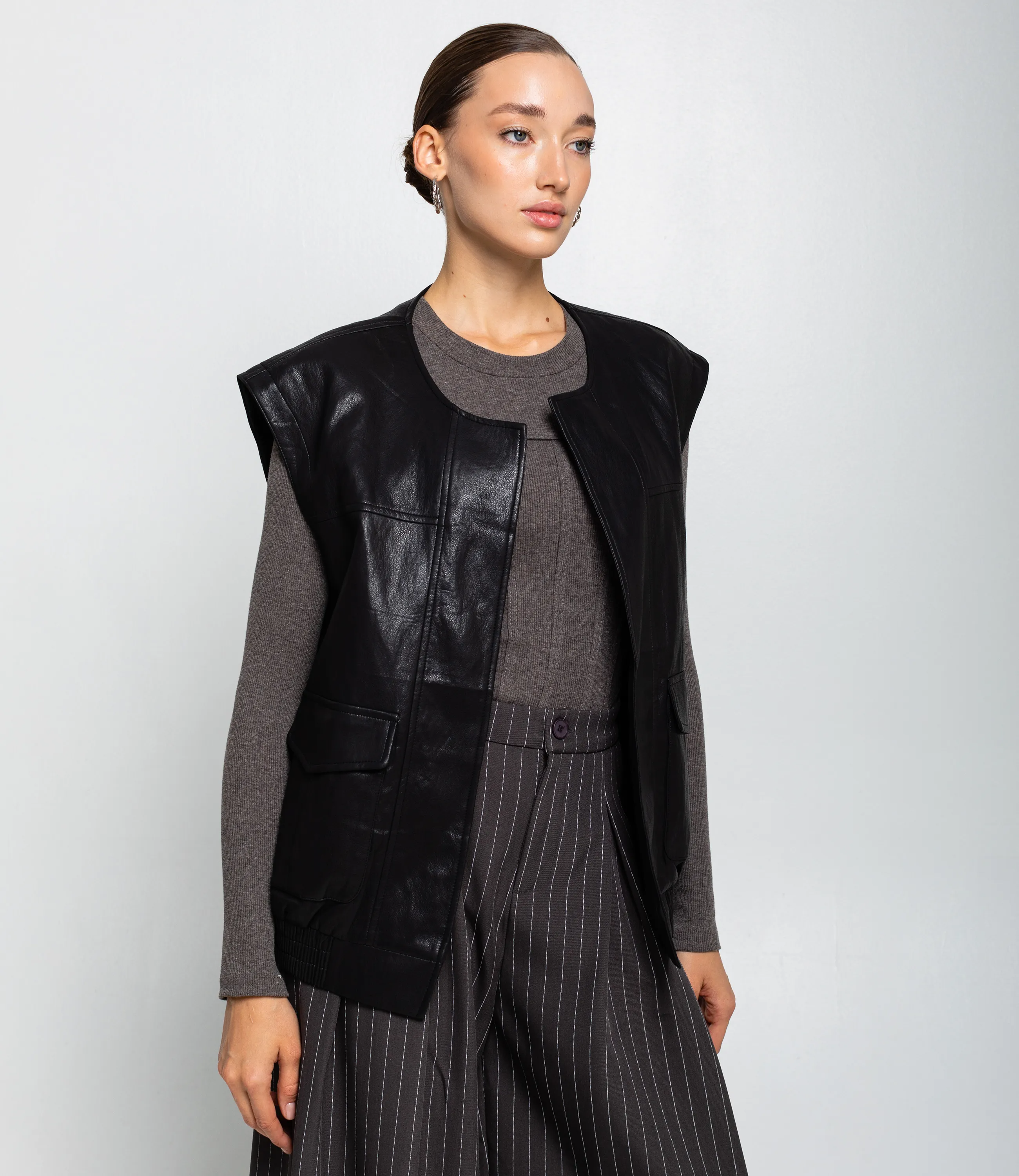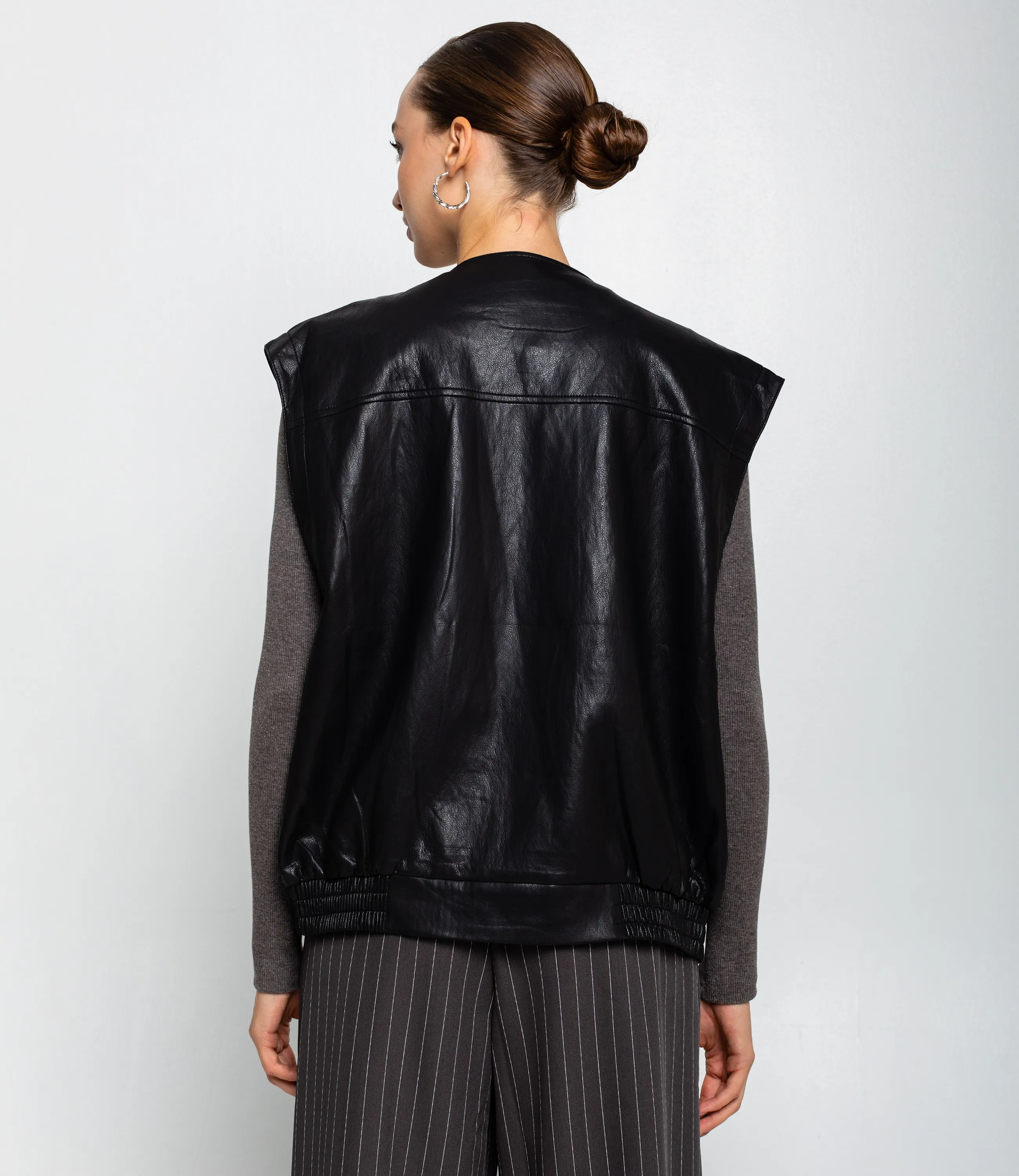 Жилет – это одежда, которая подчеркивает привлекательность каждой женщины. Этот жилет выполнен из ткани, состоящей на 55% полиуретан и 45% вискозы. Модель с гладкой фактурой и строгим boxy‑силуэтом до бёдер, с выраженной плечевой линией и круглым вырезом без воротника; передняя часть открытая без видимой застёжки, украшена декоративными вертикальными и горизонтальными швами и нагрудными кокетками, по бокам расположены накладные карманы с клапанами, внизу присутствуют эластичные вставки для лучшей посадки — плотная, но гибкая кожа придаёт структуру и сохраняет форму, что делает жилет универсальным для кэжуал образа. Не откажите себе в удовольствии быть элегантной! Рост модели: 168, параметры: 85-63-92. Вы можете заказать онлайн презентацию на интересующие Вас модели. Наши менеджеры свяжутся с Вами и проведут индивидуальную видеотрансляцию, помогут составить заказ и ответят на Ваши вопросы.