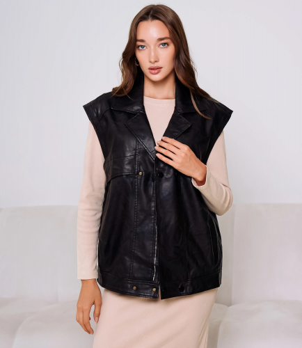 Жилет – это одежда, которая подчеркивает привлекательность каждой женщины. Этот жилет выполнен из ткани, состоящей на 55% полиуретан и 45% вискозы. Модель прямого, несколько свободного кроя с удлинённой линией — длина до середины бедра, что обеспечивает универсальность носки поверх платьев, свитеров или рубашек. Плечи оформлены с небольшим расширением, образуя неглубокие рукава‑крылышки, которые придают образу структурность и лёгкую асимметрию. Воротник отложной с перевёрнутыми лацканами, переходящими в центральную застёжку на металлические кнопки и скрытую молнию, что даёт возможность регулировать посадку и выраженность декольте. Лицевая панель украшена рельефной прострочкой и декоративными швами, которые зрительно удлиняют силуэт. Чтобы вы были уверены в размере, мы представили на странице таблицу. Воспользовавшись ею, вы сможете сами обмерить себя и удостовериться. Установленная нами цена является доступной. Не откажите себе в удовольствии быть элегантной! Рост 168 см, 85-63-92. Вы можете заказать онлайн презентацию на интересующие Вас модели. Наши менеджеры свяжутся с Вами и проведут индивидуальную видеотрансляцию, помогут составить заказ и ответят на Ваши вопросы.