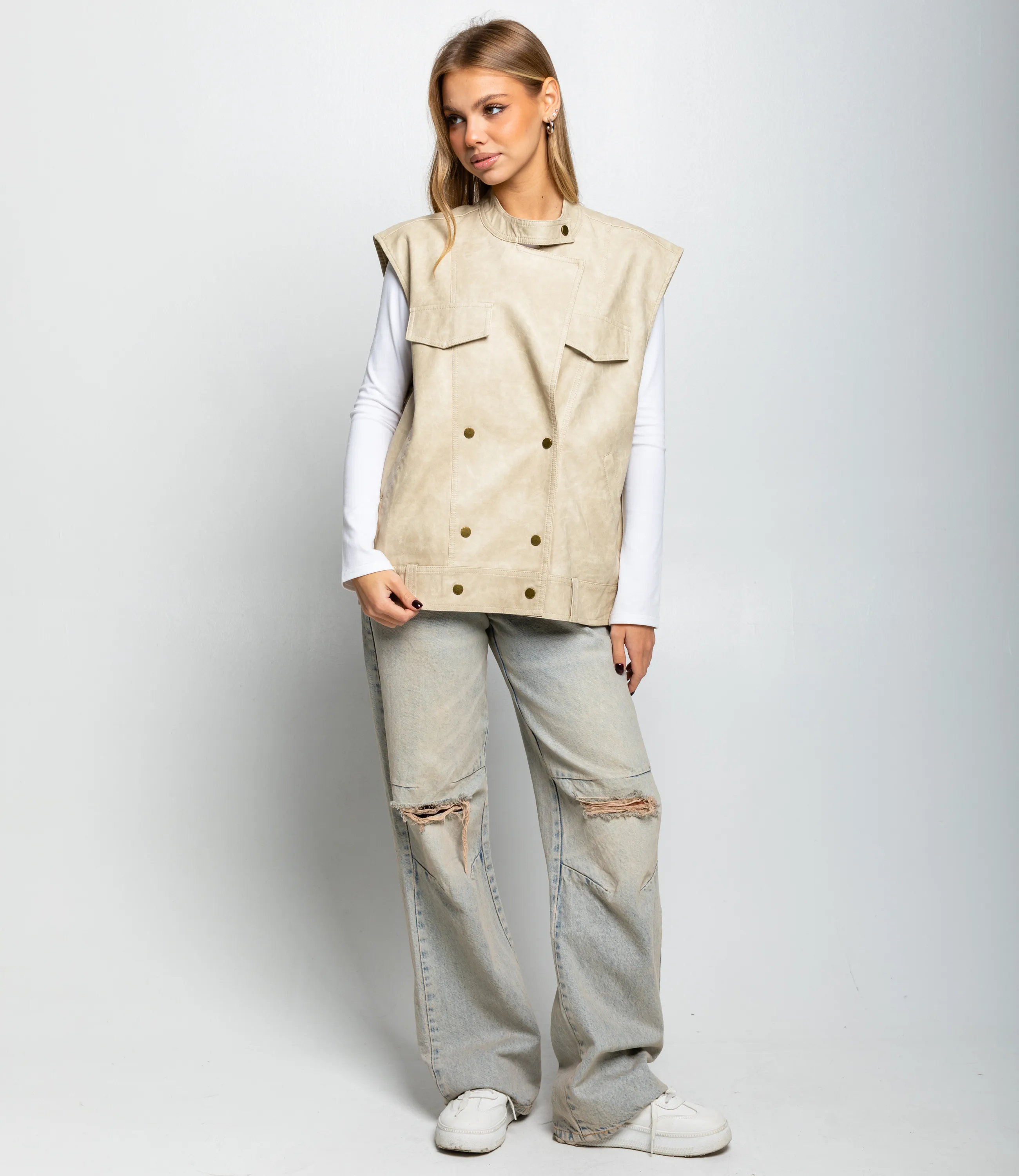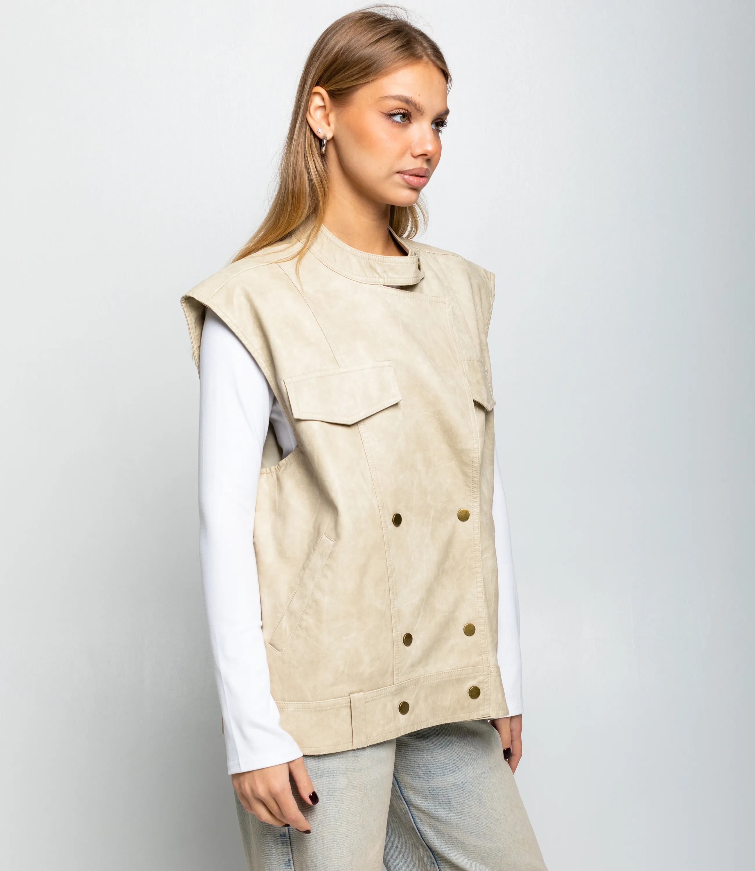 Жилет #КТ6366, светло-бежевый