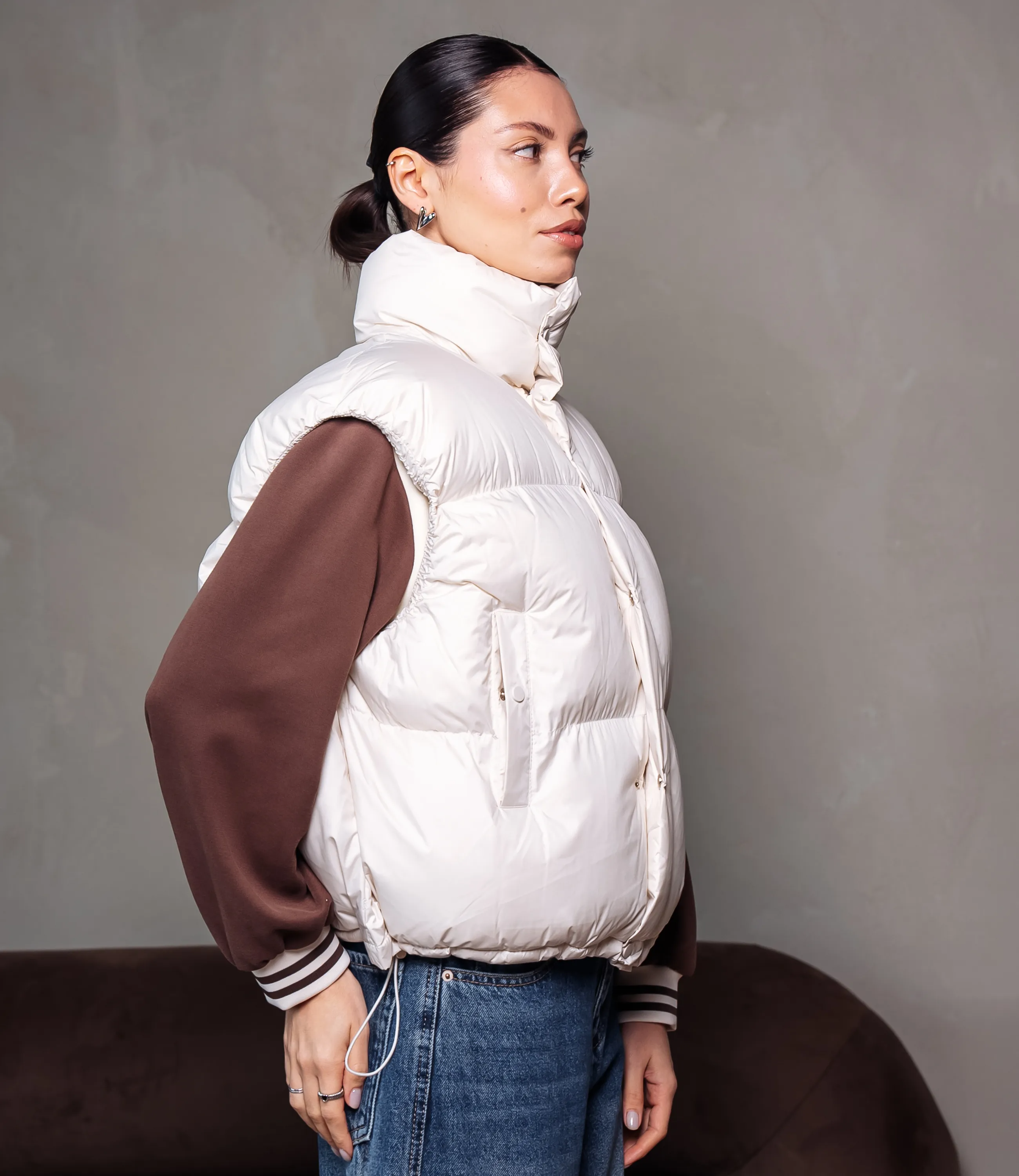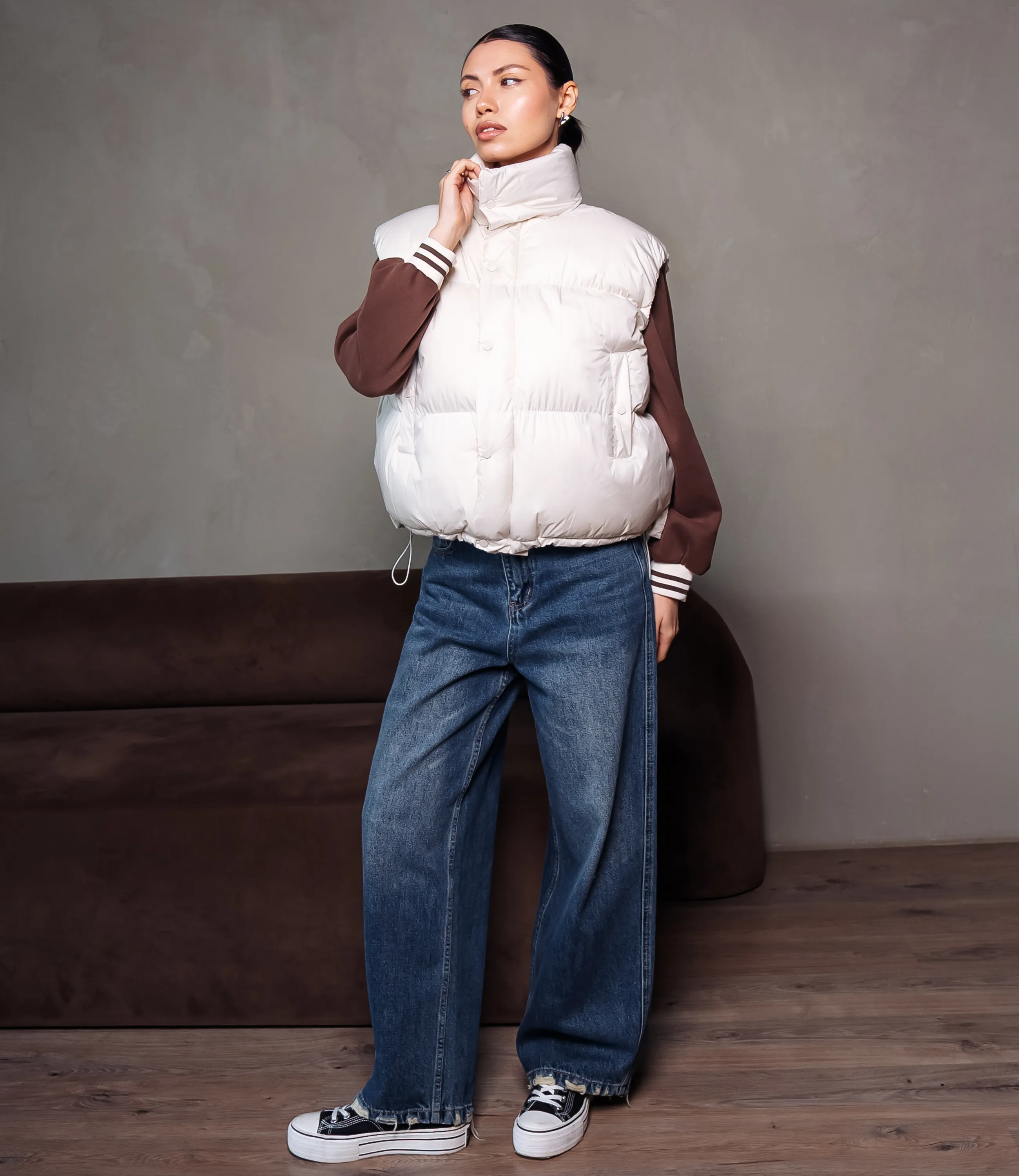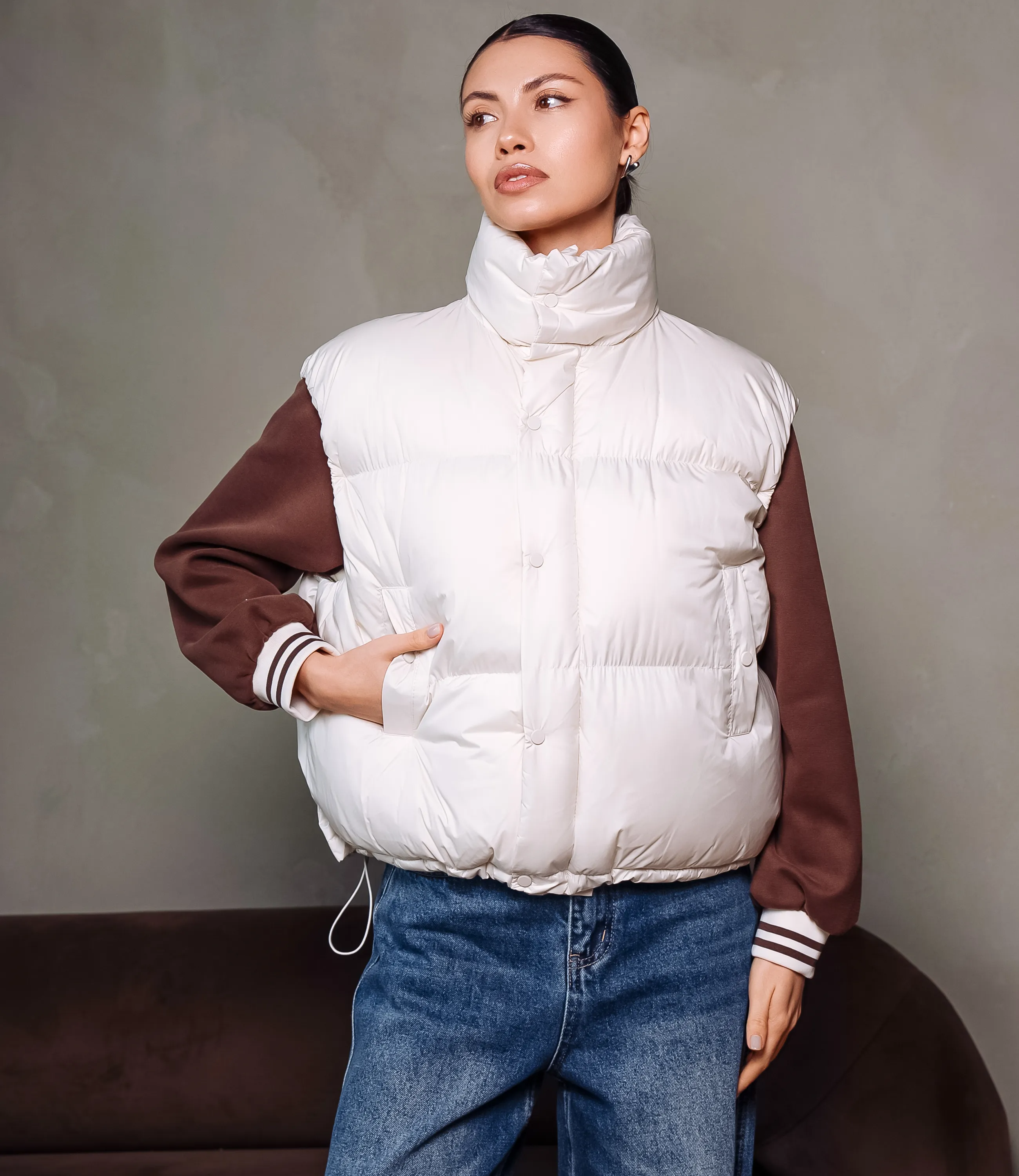 Жилетка – это одежда, которая подчеркивает уникальность каждой представительницы прекрасного пола. Свободного кроя, воротник-стойка, внешняя ткань гладкая и плотная с водоотталкивающим эффектом и лёгким блеском. Центральная застёжка с внутренней молнией и наружной планкой на кнопках; врезные боковые карманы с клапанами или скрытой застёжкой на удобной высоте; низ с тонким стягивающим шнуром и фиксаторами для регулировки объёма; широкие проймы, допускающие многослойность; аккуратные плоские швы и минималистичная матовая фурнитура; внутренняя гладкая подкладка, возможно с внутренним карманом; общий стиль практичный и тёплый, ориентирован на многослойные городские образы. Для изготовления жилетки использован 55% нейлон и 45% полиэстер, который характеризуется отличным качеством. Даже после многократных стирок изделие не утратит первоначальной привлекательности. Вы будете носить его с радостью. Обратите внимание на цвет, который является насыщенным и полностью соответствует фотографии на сайте. Чтобы вы были уверены в размере, мы представили на странице таблицу. Воспользовавшись ею, вы сможете сами обмерить себя и удостовериться. Установленная нами цена является приемлемой. Не откажите себе в удовольствии быть неповторимой! Рост модели: 164, параметры: 83-61-89.