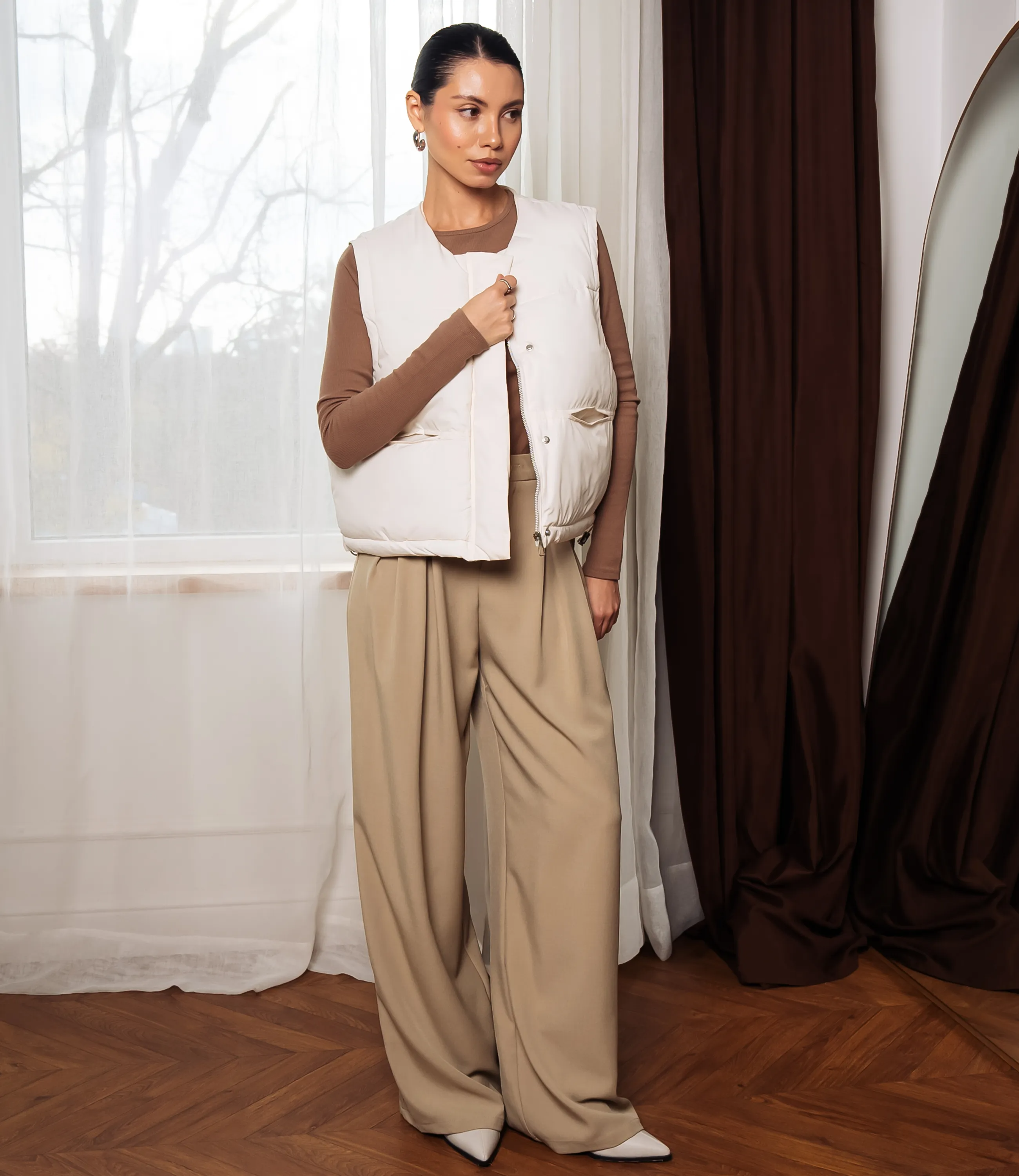 Жилет – это одежда, которая подчеркивает привлекательность каждой женщины. Этот жилет выполнен из ткани, состоящей на 100% полиэстер. Жилет с укороченной длиной до линии талии, выполнен в стёганой конструкции с горизонтальными широкими блоками, придающими объём и теплоизоляцию; силуэт прямой, слегка свободный, предназначен для многослойной носки. Горловина выполнена в виде невысокой стойки без лацканов, мягко обрамляющая шею; линия пройм широкая, обеспечивающая свободу движения и удобство поверх длинного рукава. По передней части расположены два втачных кармана на уровне талии с горизонтальным входом, выполненные с подкройными бортами для сохранения тепла и удобного доступа; внутренние карманы отсутствуют или минимальны. Низ жилета собран в слегка уплотнённую кромку без яркой резинки, возможно с регулировочными элементами по бокам. Не откажите себе в удовольствии быть элегантной! Вы можете заказать онлайн презентацию на интересующие Вас модели. Наши менеджеры свяжутся с Вами и проведут индивидуальную видеотрансляцию, помогут составить заказ и ответят на Ваши вопросы.