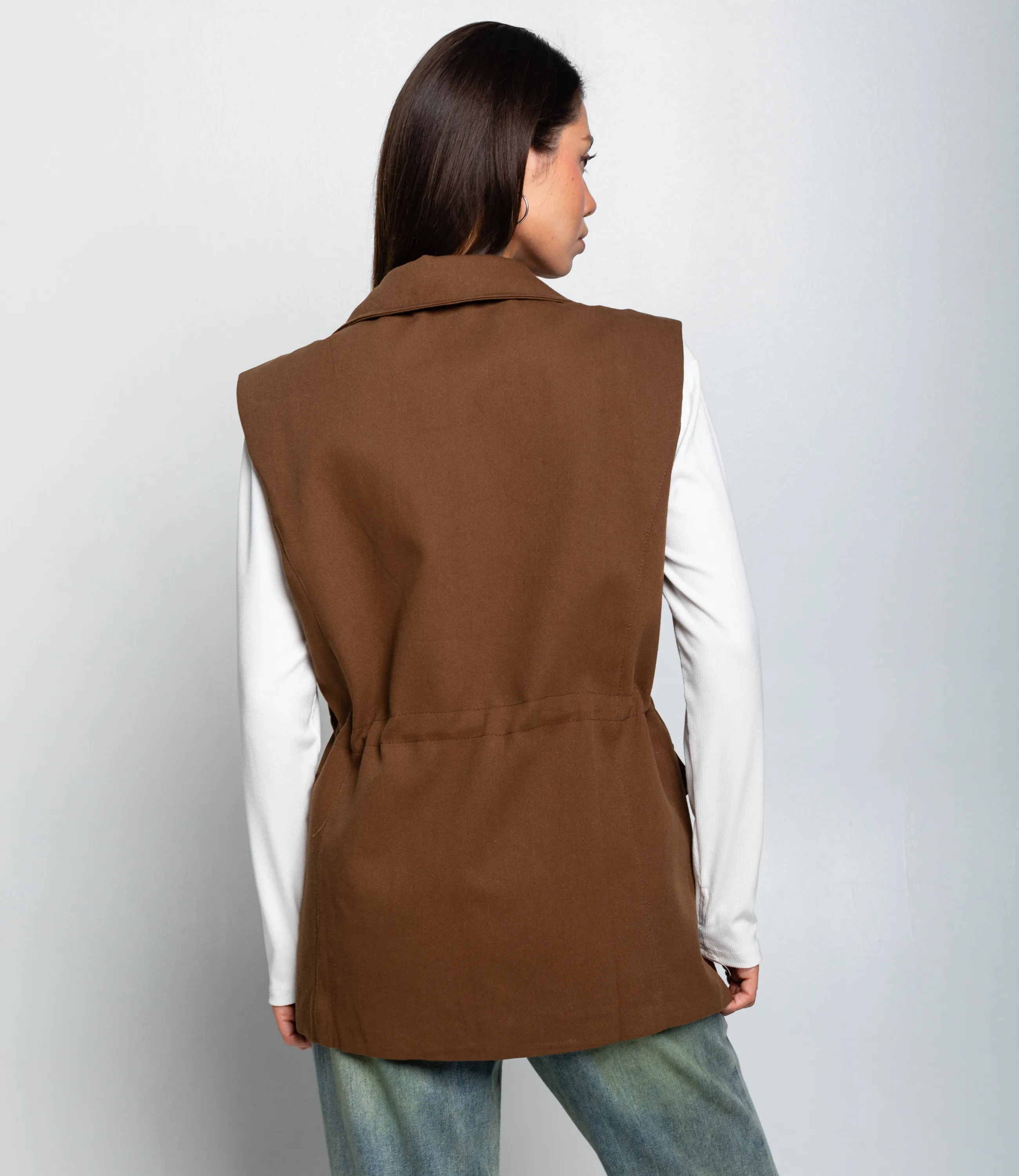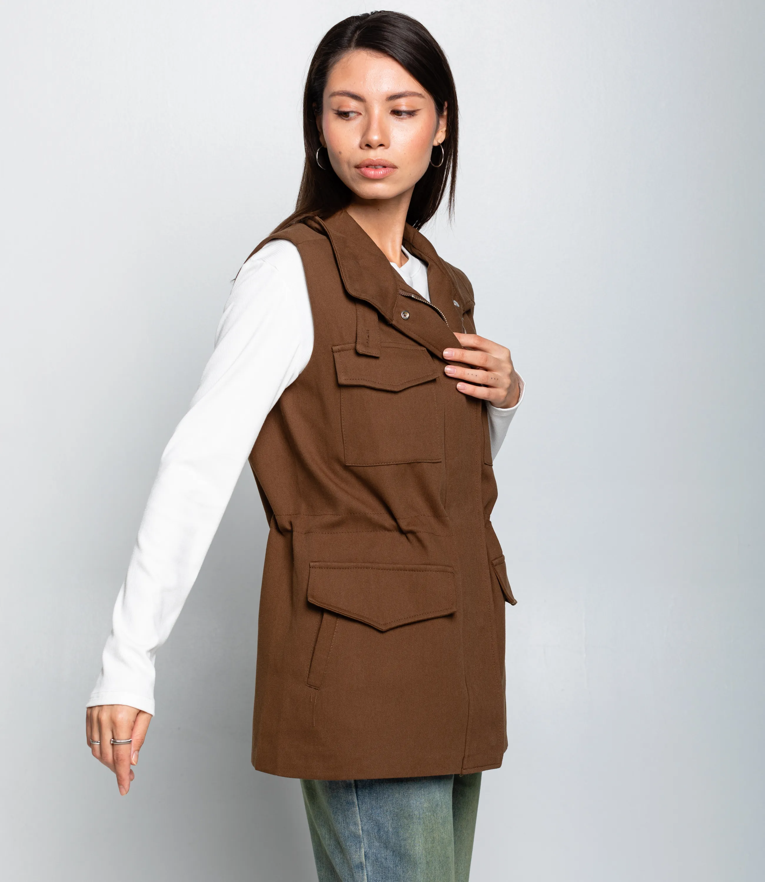 Жилет – это одежда, которая подчеркивает уникальность каждой представительницы прекрасного пола. Жилет прямого силуэта средней длины, с двубортной планкой и центральной застежкой на молнию, дополненной скрытой кнопочной утяжкой в верхней части, с отложным воротником, переходящим в широкие полочки, плечи слегка расширенные для структурированного объема, без рукавов с аккуратно обработанными проймами, поясные и нагрудные накладные карманы с клапанами — по два на каждой стороне разного размера для функциональности, швы декоративно подчернены строчкой, талия оформлена кулиской с регулируемым затягиванием для формирования силуэта, низ прямой, обработан усиленной подгибкой. Для пошива выбрана ткань 90% хлопок и 10% полиэстер, которая характеризуется безупречным качеством. Даже после множества стирок изделие не утратит первоначальной индивидуальности. Вы сможете носить его с большим удовольствием. Обратите внимание на цвет. Он является насыщенным и полностью соответствует фотографии на сайте. Чтобы вы были уверены в размере, мы представили на странице таблицу. Воспользовавшись ею, вы сами сможете сделать мерки и удостовериться. Установленная нами цена является адекватной. Не откажите себе в удовольствии быть элегантной! Рост модели 164 см., 83-61-89.