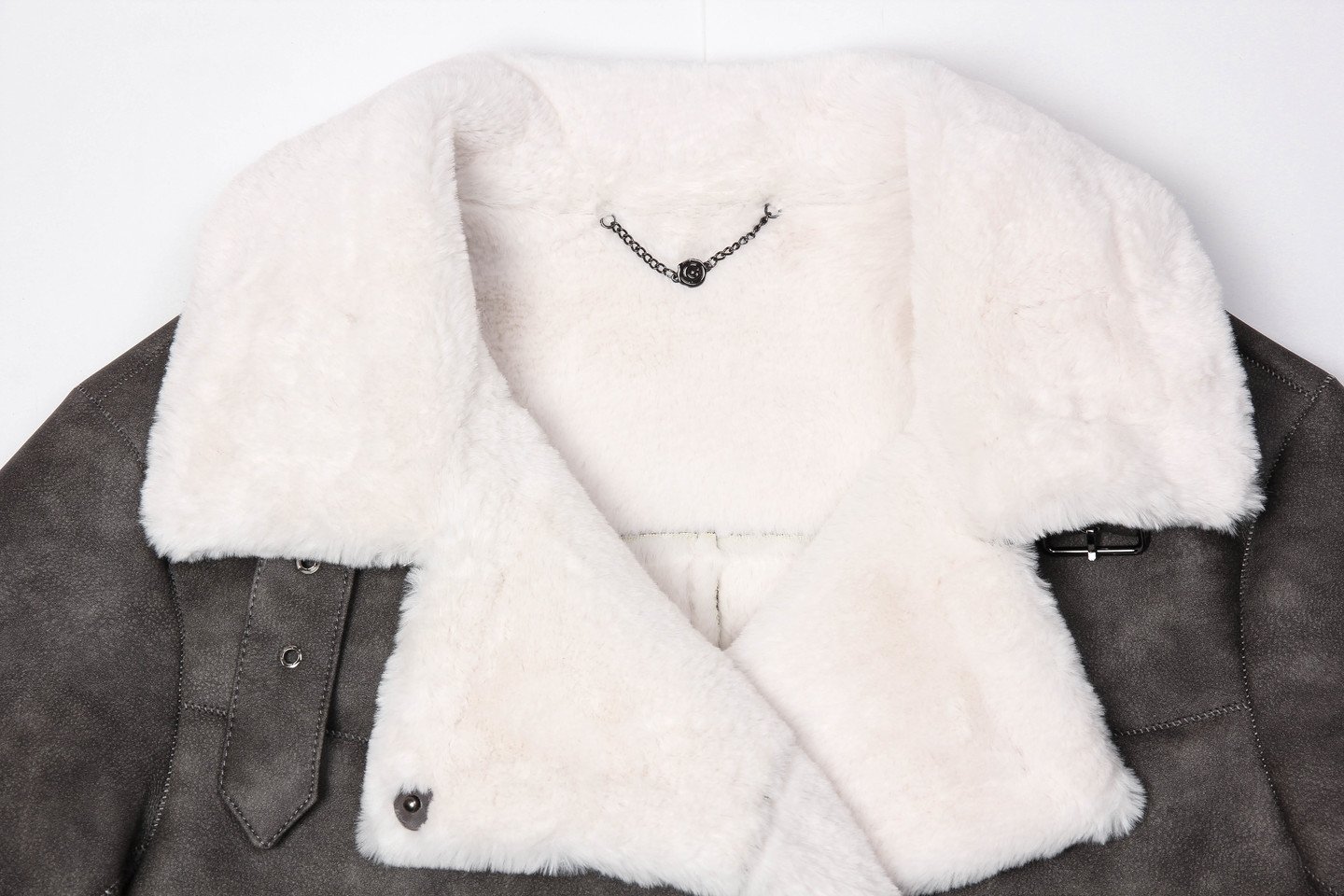 добиваемся необходимого эффекта. Дубленка застегивается на крупные кнопки, что очень