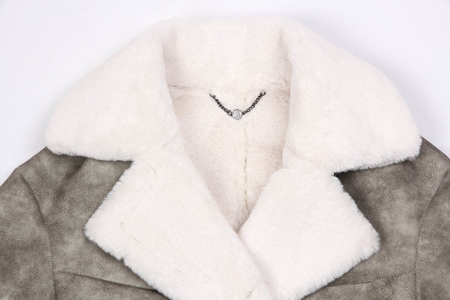 мехом молочного оттенка, который освежает модель. Дубленка -