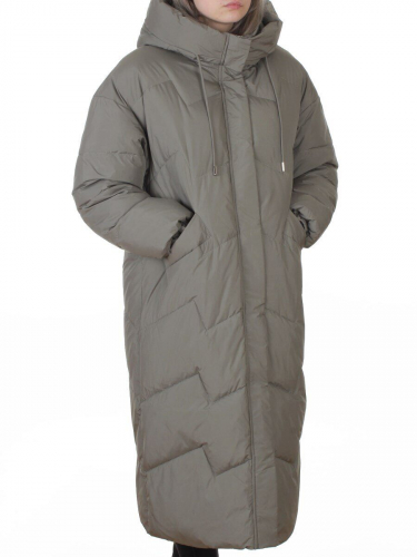8883 GRAY/GREEN Пальто зимнее женское (150 гр. холлофайбер)