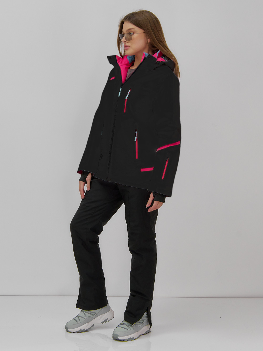 Горнолыжный костюм женский зимний черного цвета 07091Ch