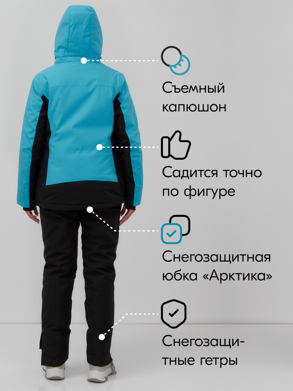 • Изысканный дизайн: Приталенный крой, стильные декоративные элементы и современная цветовая палитра сделают вас центром внимания на фоне снежных склонов.