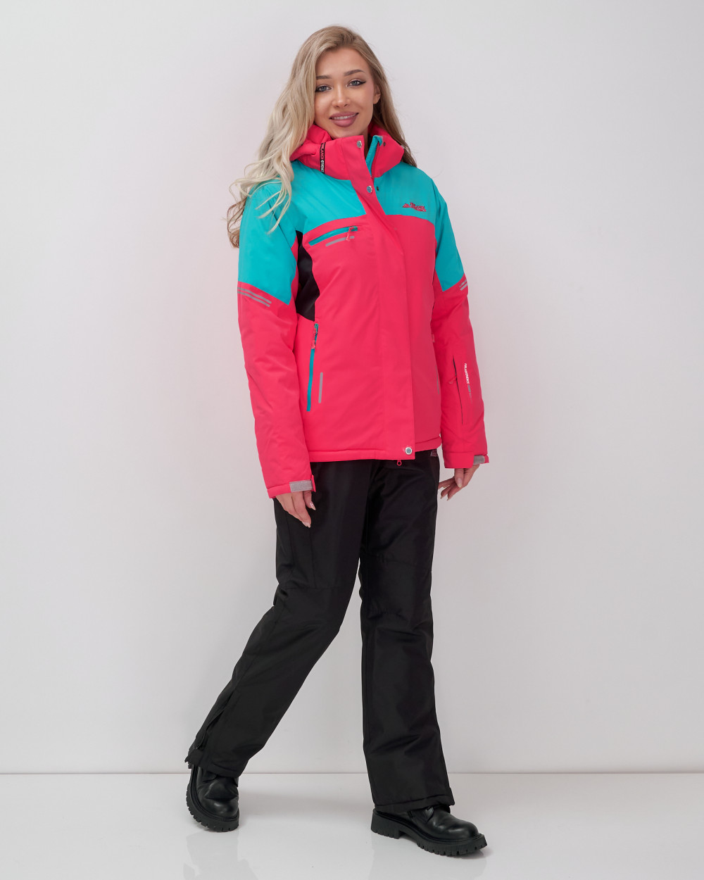 Костюм выполнен в ярких цветах: малиновом, бирюзовом, розовом, темно-синем и фиолетовом, что добавляет динамики вашему образу. Уникальный свободный покрой и съемный капюшон обеспечивают отличную свободу движений, а множество карманов, включая карман для ски-пасса, сделают ваши выходы еще более удобными.