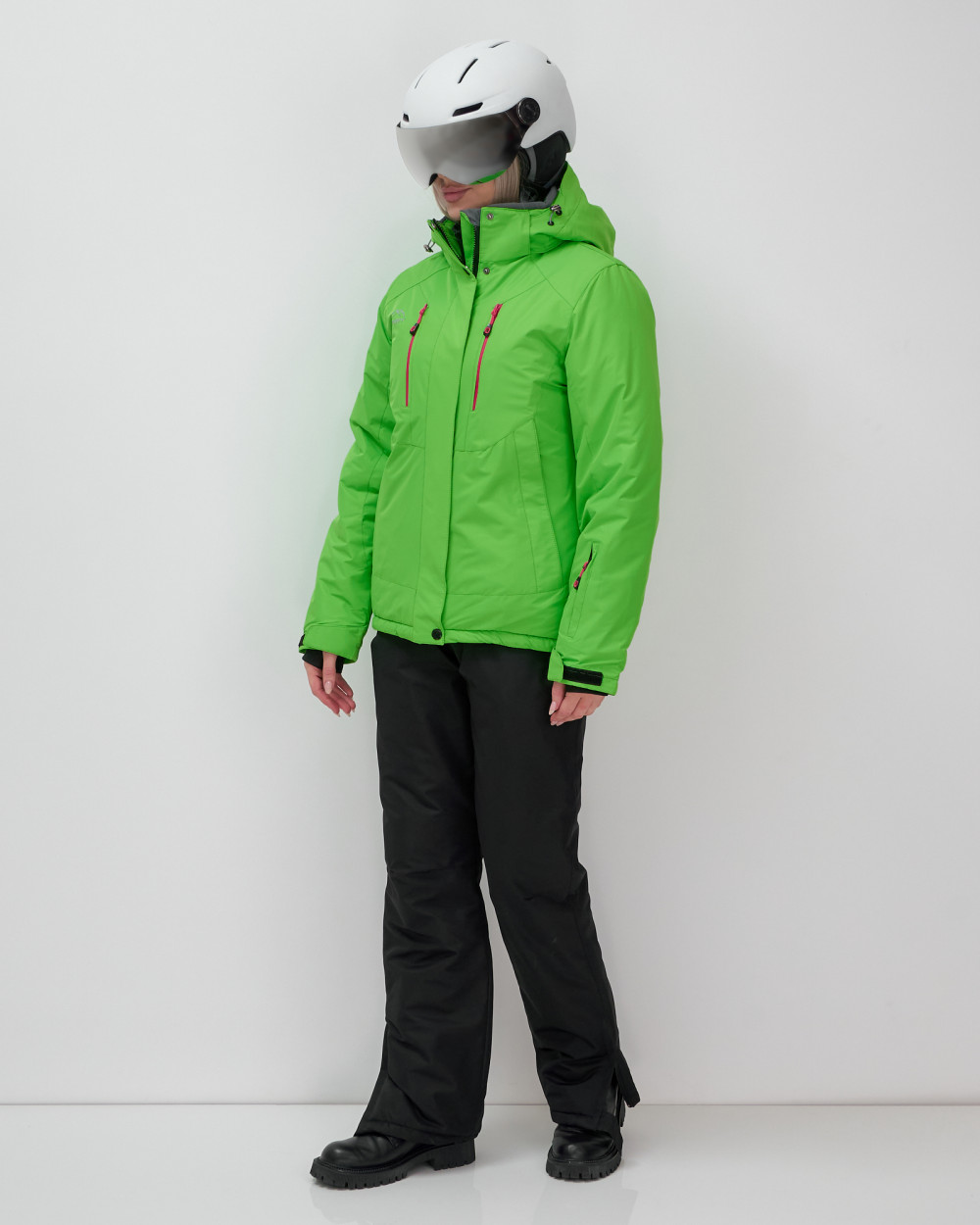 Удобный свободный покрой и съемный капюшон позволяют легко настраивать костюм под ваши предпочтения, а внутренние карманы и карман для ски-пасса добавляют практичности. Обратите внимание на стильные детали: светоотражающие элементы и яркие цвета — зеленый и салатовый — делают этот костюм не только функциональным, но и привлекающим внимание.