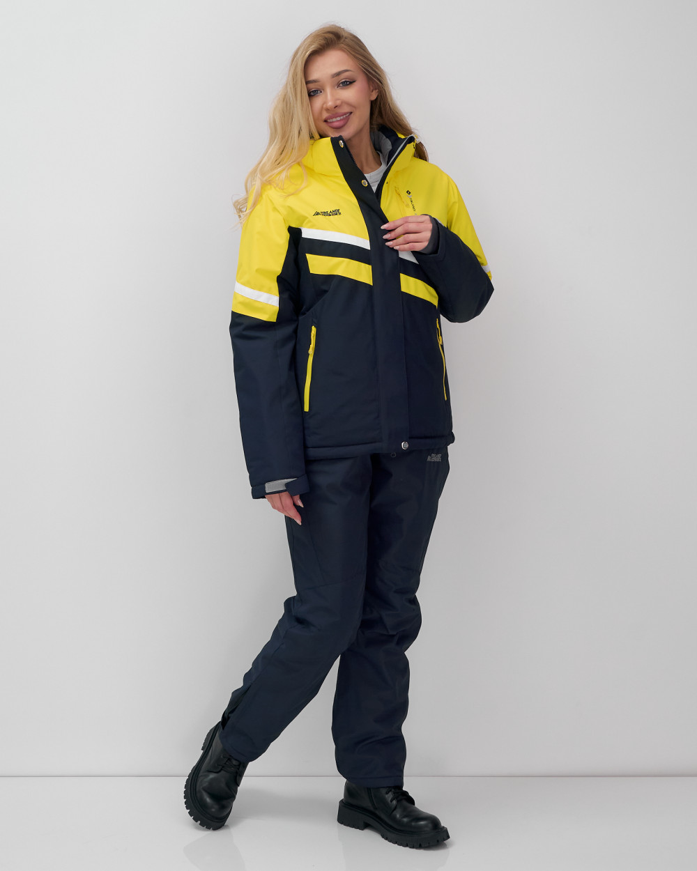 Элементы дизайна включают светоотражающие детали, яркие логотипы и надписи, а также возможность выбора из нескольких цветовых решений: фиолетовый, серый, бирюзовый, желтый, белый и синий. Этот костюм станет отличным выбором как для спортивных мероприятий, так и для повседневных прогулок в зимний период.