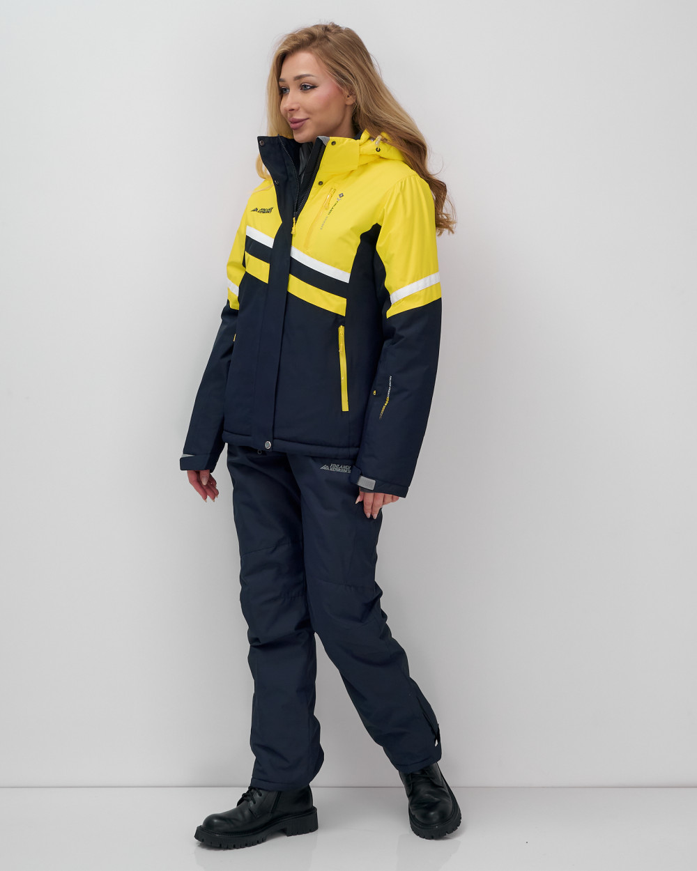 Горнолыжный костюм женский зимний желтого цвета 02808J