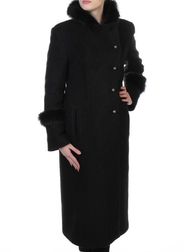 13927A BLACK Пальто шерстяное с мехом HELLEN