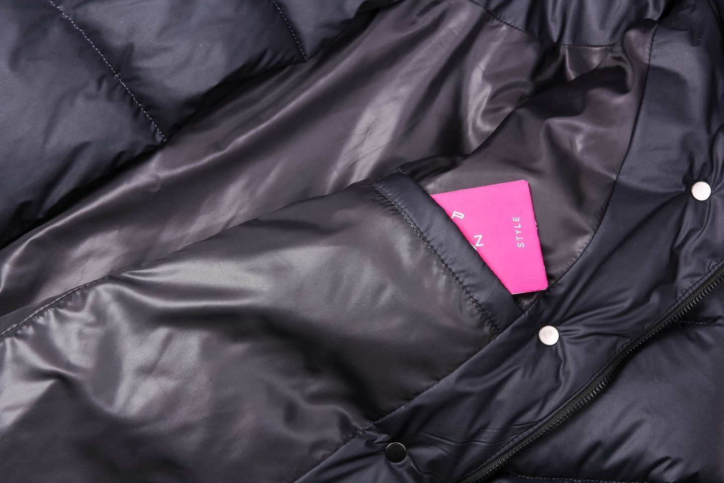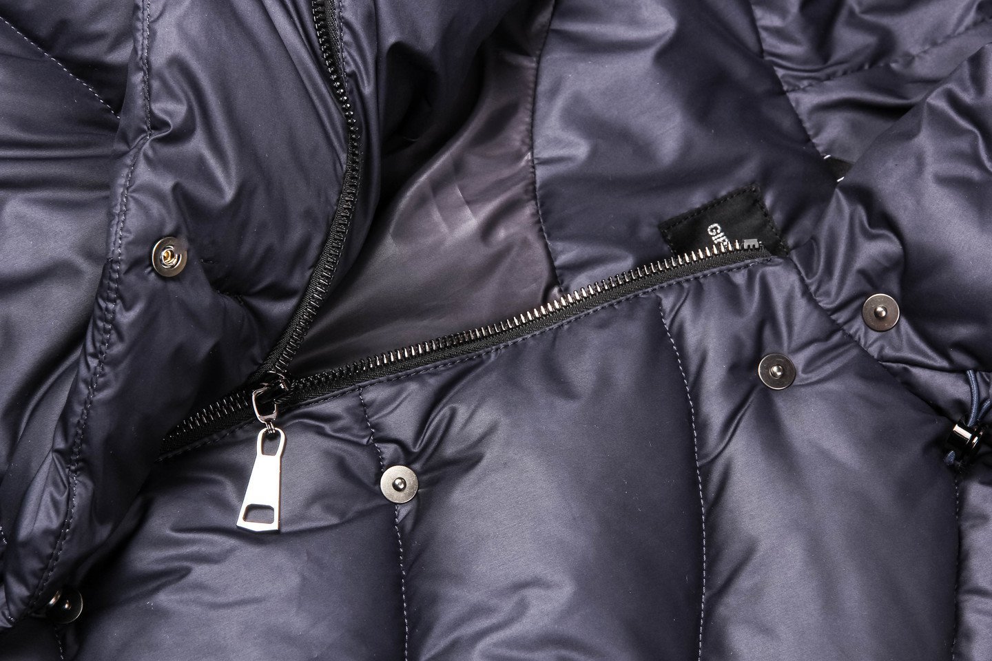 потайной кнопке. Большой и уютный капюшон. Застежка на молнию и потайные кнопки. Утеплитель синтепух-синтетический пух. Температурный режим до -25. черно-синий