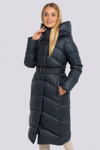 Многие современные женщины уже не представляют, как пережить зимнюю стужу без модного пуховика. Подобная верхняя одежда самая доступная, удобная, комфортная и главное очень теплая. Самые красивые пуховики 2022-2023 представлены моделями в виде стеганого пальто. Наша модель выстрочена рисунком «мягкий ромб», напоминающим волну, за счет чего стежка смотрится очень оригинально. Силуэт изделия – прямой, объем – умеренный, покрой рукава – втачной. Застежка на скрытую молнию и кнопки. Объем капюшона регулируется резинкой, по линии низа рукава – манжет. Для любительниц подчеркнуть достоинства фигуры модель дополнена поясом. Вся фурнитура модели подобрана идеально в цвет, что позволяет ей выглядеть дорого и достойно. Утеплитель синтепух-синтетический пух. Температурный режим до -25. черно-синий