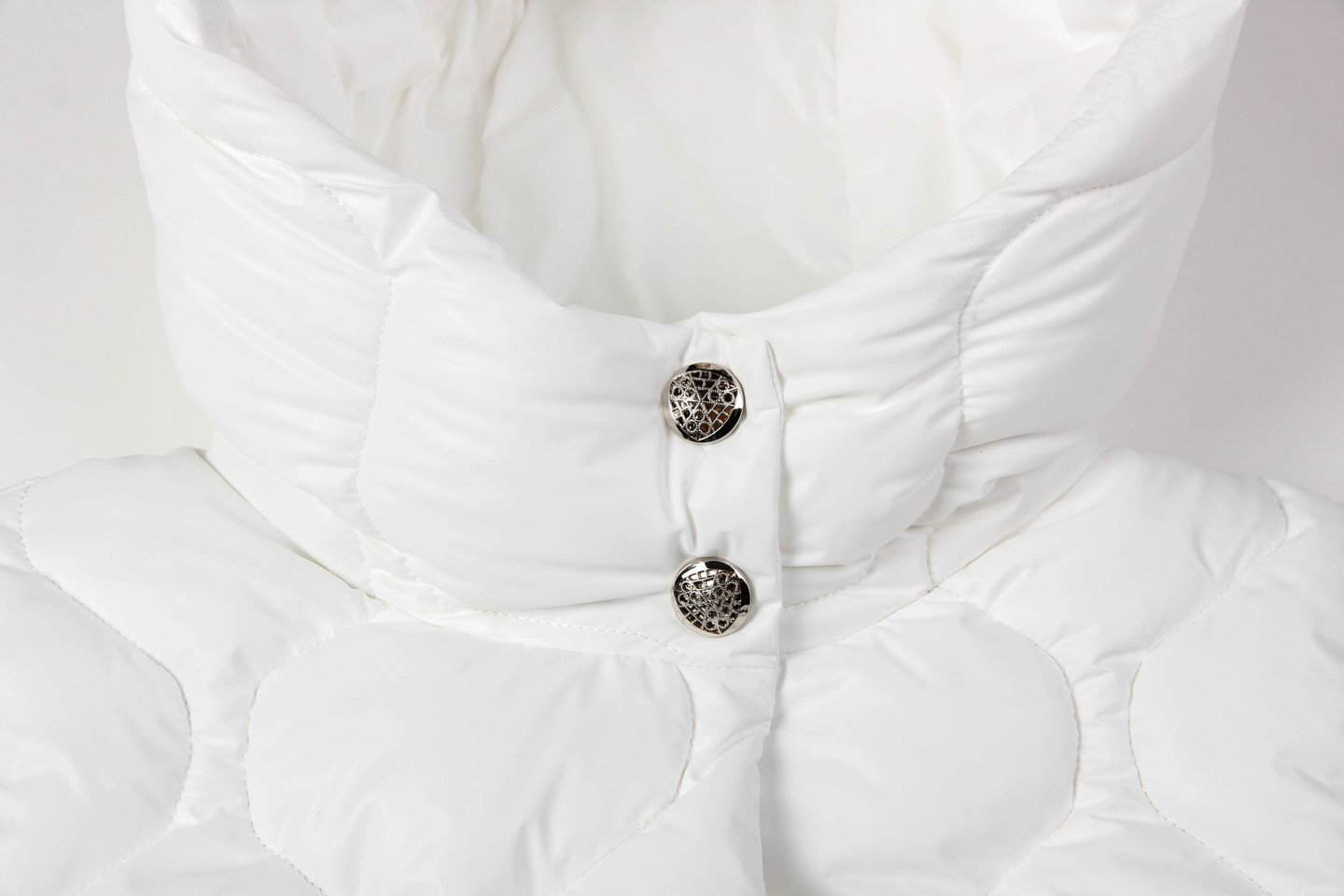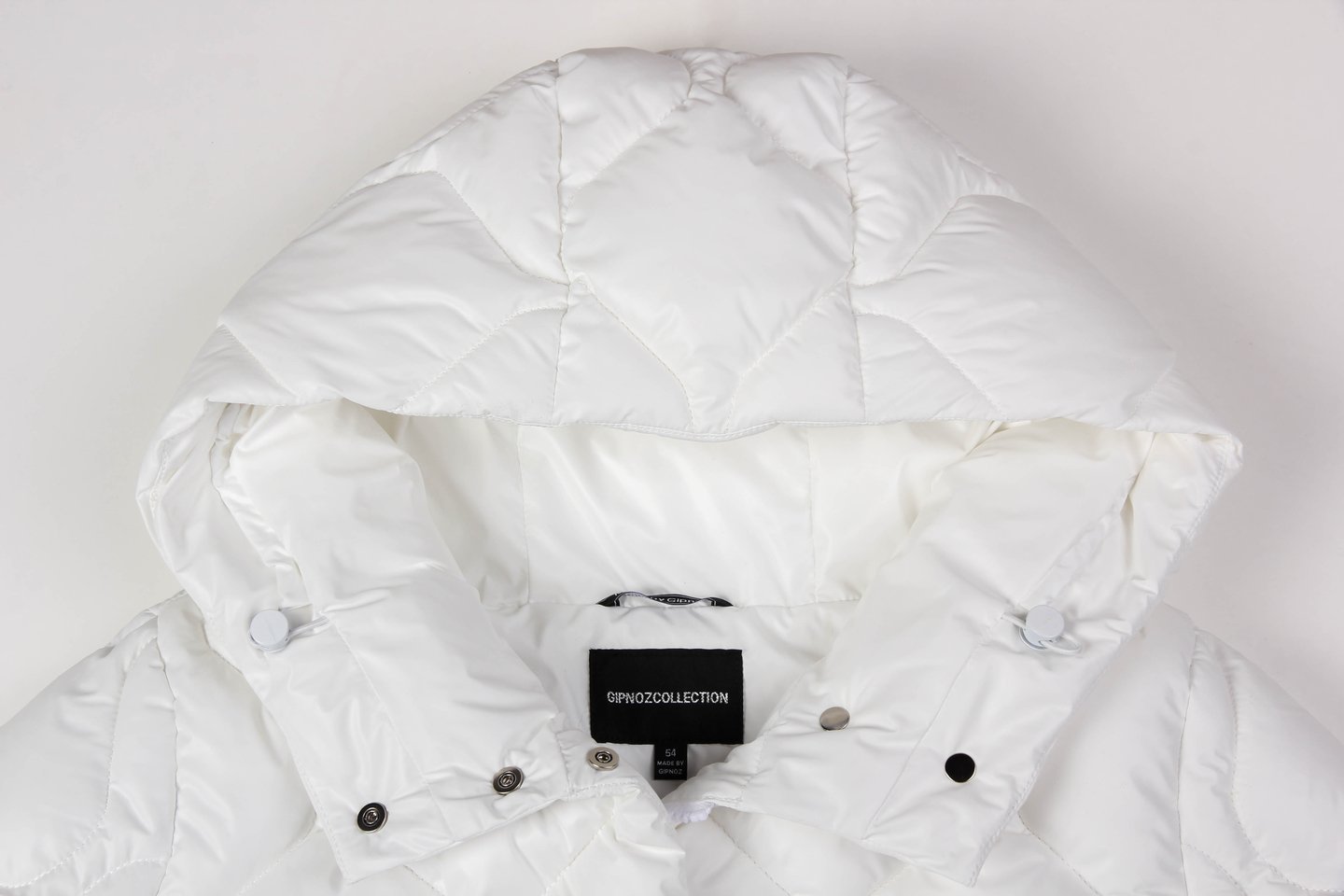 Многие современные женщины уже не представляют, как пережить зимнюю стужу без модного пуховика. Подобная верхняя одежда самая доступная, удобная, комфортная и главное очень теплая. Одной из актуальных моделей является пуховик в виде стеганого пальто средней длины. Наша модель выстрочена рисунком «мягкий ромб», напоминающим волну, за счет чего стежка смотрится очень оригинально. Силуэт изделия – прямой, объем – умеренный, покрой рукава – втачной. Застежка на скрытую молнию и кнопки. Объем капюшона регулируется резинкой, по линии низа рукава – манжет, по линии низа изделия – кулиска. Цветовое решение модели и отделочная фурнитура позволяют выглядеть обладательнице ярко и оригинально. Утеплитель синтепух-синтетический пух. Температурный режим до -20. белый