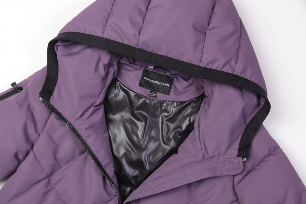 Универсальный хит –женское стеганое пальто с капюшоном из матовой плащевой ткани. Пальто прямого силуэта с ромбовидной стежкой на передней части изделия и фигурной стежкой на спинке. Центральная застежка на молнию, прорезные удобные карманы. Отделка трикотажной бейкой смотрится очень эффектно. В качестве утеплителя мягкий и практичный синтепух-синтетический пух. Температурный режим до -25. баклажан