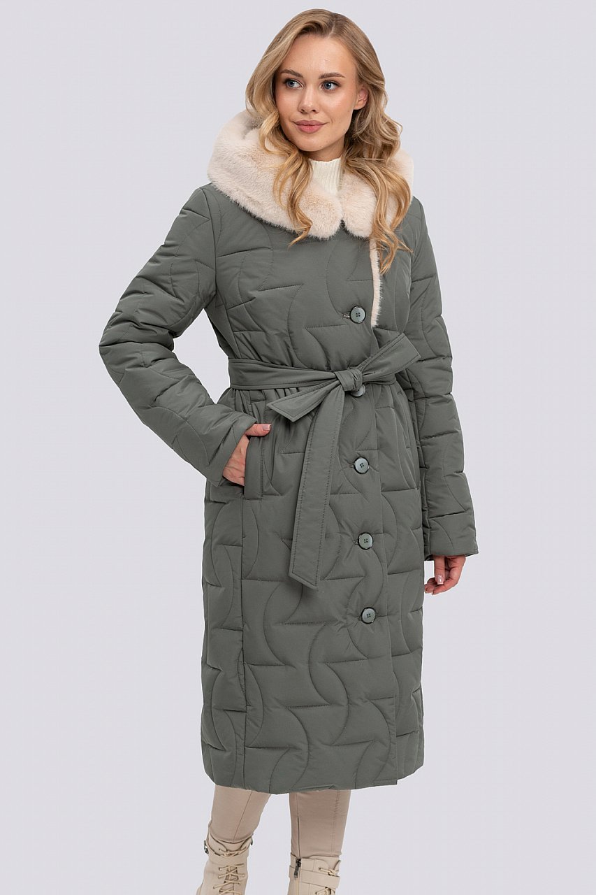 Впервые в зимнем сезоне мы предлагаем пальто из стеганой ткани. Изделие из данной ткани более практичное и удобное в использовании. Пальто в классическом стиле, полуприлегающего силуэта. Умеренный объем изделия идеально подходит для создания уютного образа, который при этом будет выглядеть стильно и элегантно. Втачной покрой рукава идеален для любой фигуры, придает стройность и строгость образу. Капюшон - защитит от холода, а нежнейший мех, имитирующий норку, красиво ложится вокруг лица. Рукав отгибается на манжет. Модель отлично смотрится с поясом и без. Пальто застегивается на пуговицы и внутреннюю молнию. Новый вид стежки несомненно приковывает взгляды окружающих. Нам удалось продлить сезон носки изделия, за счет внедрения в производство нового вида стеганой ткани. Ткань верха плотная и многослойная. Утеплитель термофин, плотность 260. Температурный режим до -25. зеленая олива