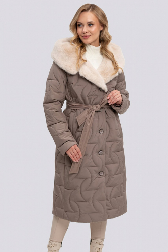 Впервые в зимнем сезоне мы предлагаем пальто из стеганой ткани. Изделие из данной ткани более практичное и удобное в использовании. Пальто в классическом стиле, полуприлегающего силуэта. Умеренный объем изделия идеально подходит для создания уютного образа, который при этом будет выглядеть стильно и элегантно. Втачной покрой рукава идеален для любой фигуры, придает стройность и строгость образу. Капюшон - защитит от холода, а нежнейший мех, имитирующий норку, красиво ложится вокруг лица. Рукав отгибается на манжет. Модель отлично смотрится с поясом и без. Пальто застегивается на пуговицы и внутреннюю молнию. Новый вид стежки несомненно приковывает взгляды окружающих. Нам удалось продлить сезон носки изделия, за счет внедрения в производство нового вида стеганой ткани. Ткань верха плотная и многослойная. Утеплитель термофин, плотность 260. Температурный режим до -25. темный латте