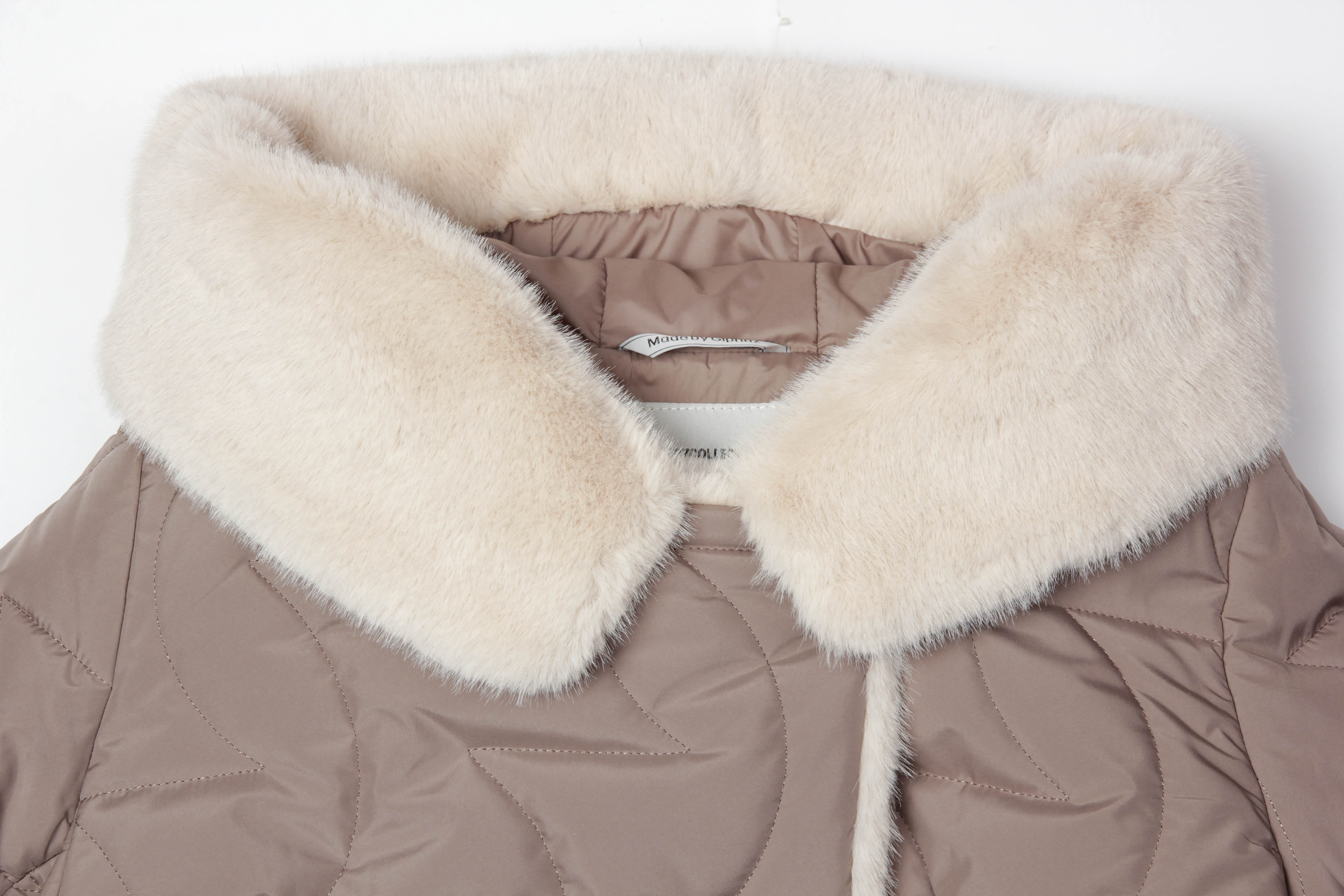Впервые в зимнем сезоне мы предлагаем пальто из стеганой ткани. Изделие из данной ткани более практичное и удобное в использовании. Пальто в классическом стиле, полуприлегающего силуэта. Умеренный объем изделия идеально подходит для создания уютного образа, который при этом будет выглядеть стильно и элегантно. Втачной покрой рукава идеален для любой фигуры, придает стройность и строгость образу. Капюшон - защитит от холода, а нежнейший мех, имитирующий норку, красиво ложится вокруг лица. Рукав отгибается на манжет. Модель отлично смотрится с поясом и без. Пальто застегивается на пуговицы и внутреннюю молнию. Новый вид стежки несомненно приковывает взгляды окружающих. Нам удалось продлить сезон носки изделия, за счет внедрения в производство нового вида стеганой ткани. Ткань верха плотная и многослойная. Утеплитель термофин, плотность 260. Температурный режим до -25. латте