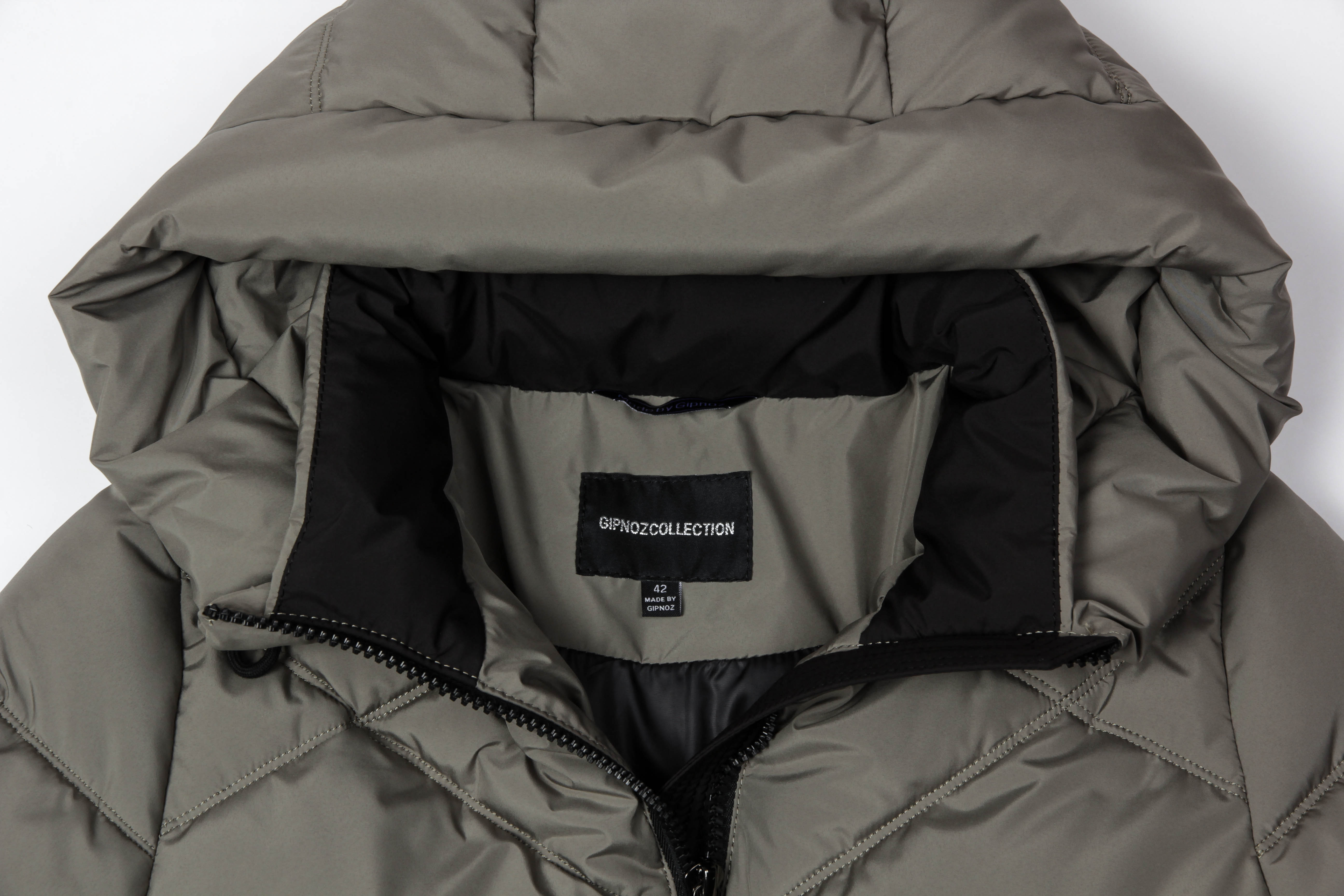Декоративные строчки в виде ромбов придают пуховику оригинальный и стильный вид, делая его не просто функциональной вещью, но и модным элементом гардероба. Этот пуховик станет незаменимым спутником в зимние месяцы, обеспечивая тепло и комфорт даже в самую суровую погоду. Утеплитель синтепух, плотность 250 г/м + термофин 60г/м. серый хаки