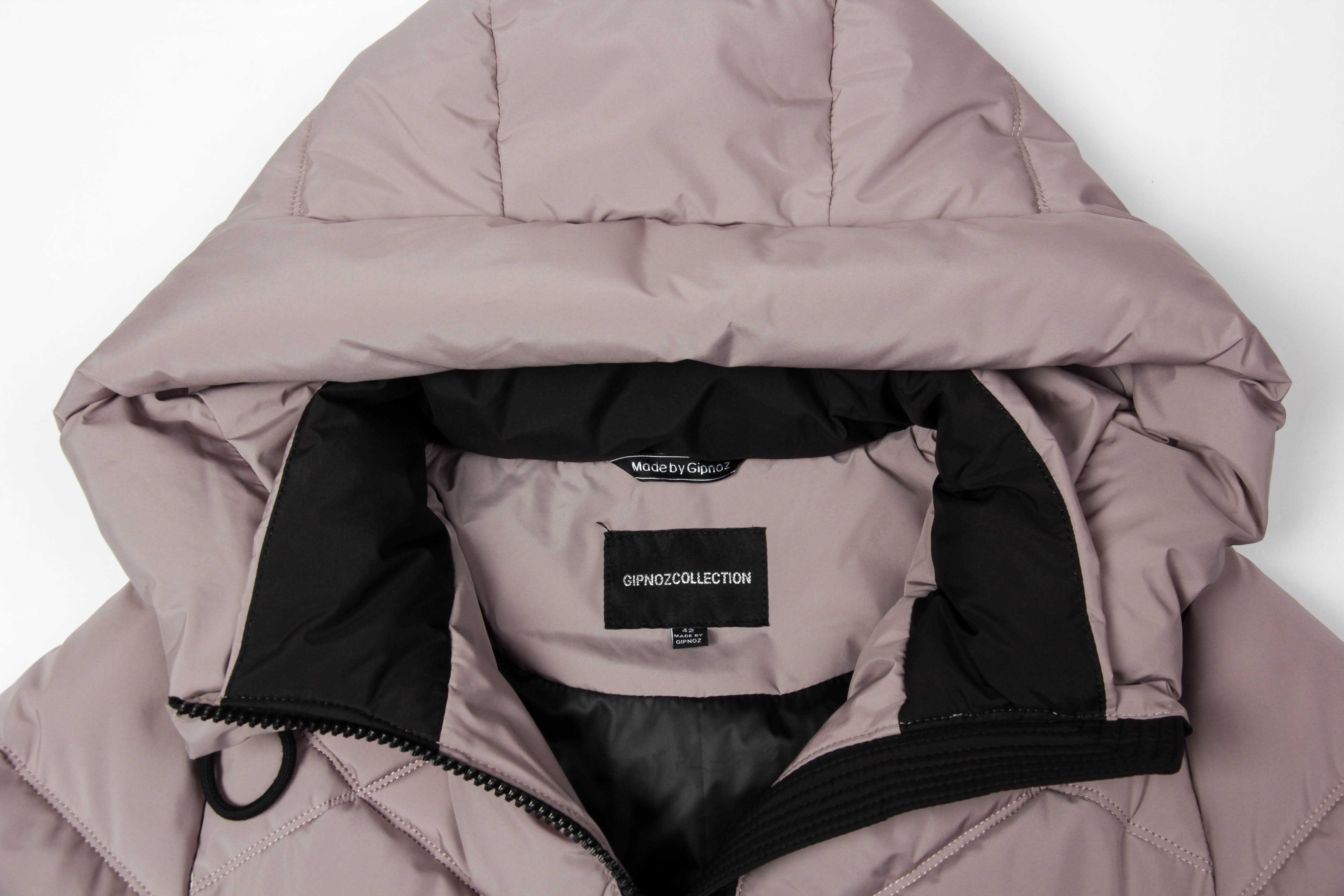 Зимний пуховик для женщин – это идеальное сочетание тепла, комфорта и стиля для холодных дней. Изготовленный на синтепухе с дополнительным слоем термофина, он обеспечивает надежную защиту от мороза, сохраняя при этом легкость и свободу движений. Подкладка из мягкого, приятного к телу материала добавляет комфорта при ношении. Этот пуховик среднего объема имеет классический силуэт, который хорошо сочетается с различными стилями одежды. Втачной рукав обеспечивает удобную посадку по плечам и свободу движений. Трикотажная манжета черного цвета по низу рукава плотно прилегает к запястью, предотвращая проникновение холодного воздуха. Застежка-молния по переду пуховика обеспечивает удобство и быстроту надевания и снятия. Карманы на молнии позволяют безопасно хранить необходимые мелочи, такие как телефон, ключи или перчатки. Уютный капюшон защитит от ветра и снега, а также добавит образу завершенности. Декоративные строчки в виде ромбов придают пуховику оригинальный и стильный вид, делая его не просто функциональной вещью, но и модным элементом гардероба. Этот пуховик станет незаменимым спутником в зимние месяцы, обеспечивая тепло и комфорт даже в самую суровую погоду. Утеплитель синтепух, плотность 250 г/м + термофин 60г/м. латте