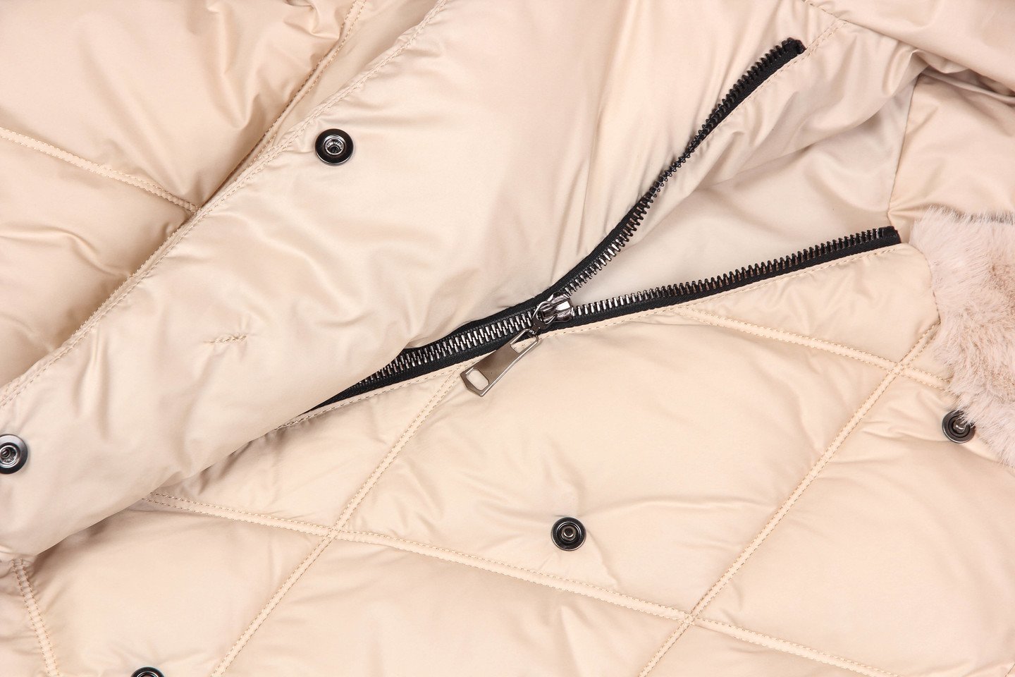Зимнее пальто для женщин, выполненное с изысканным искусственным мехом под норку по капюшону, станет настоящим акцентом в холодное время года. Мех не отстегивается. Пальто среднего объема, украшено двойными строчками, которые придают изделию стильный вид. Рукав реглан обеспечивает свободу движений, а карман листочка добавляет аккуратности и функциональности. Наполнение из синтепуха создает необходимый комфорт и тепло, а дополнительная подкладка из термофина, плотностью 60, обеспечивает защиту от пронизывающего зимнего ветра. Застежка, выполненная на молнии и дополненная кнопками, обеспечивает надежное закрытие даже в самые холодные дни. Это пальто можно с гордостью носить как в повседневной жизни, так и для особых случаев, так как его элегантный дизайн подходит к любому стилю. Каждая деталь, продуманная до мелочей, гарантирует не только стиль, но и максимальный комфорт. Это идеальный выбор для тех, кто ценит качество и красоту в зимней одежде. Температурный режим до -25. молочный