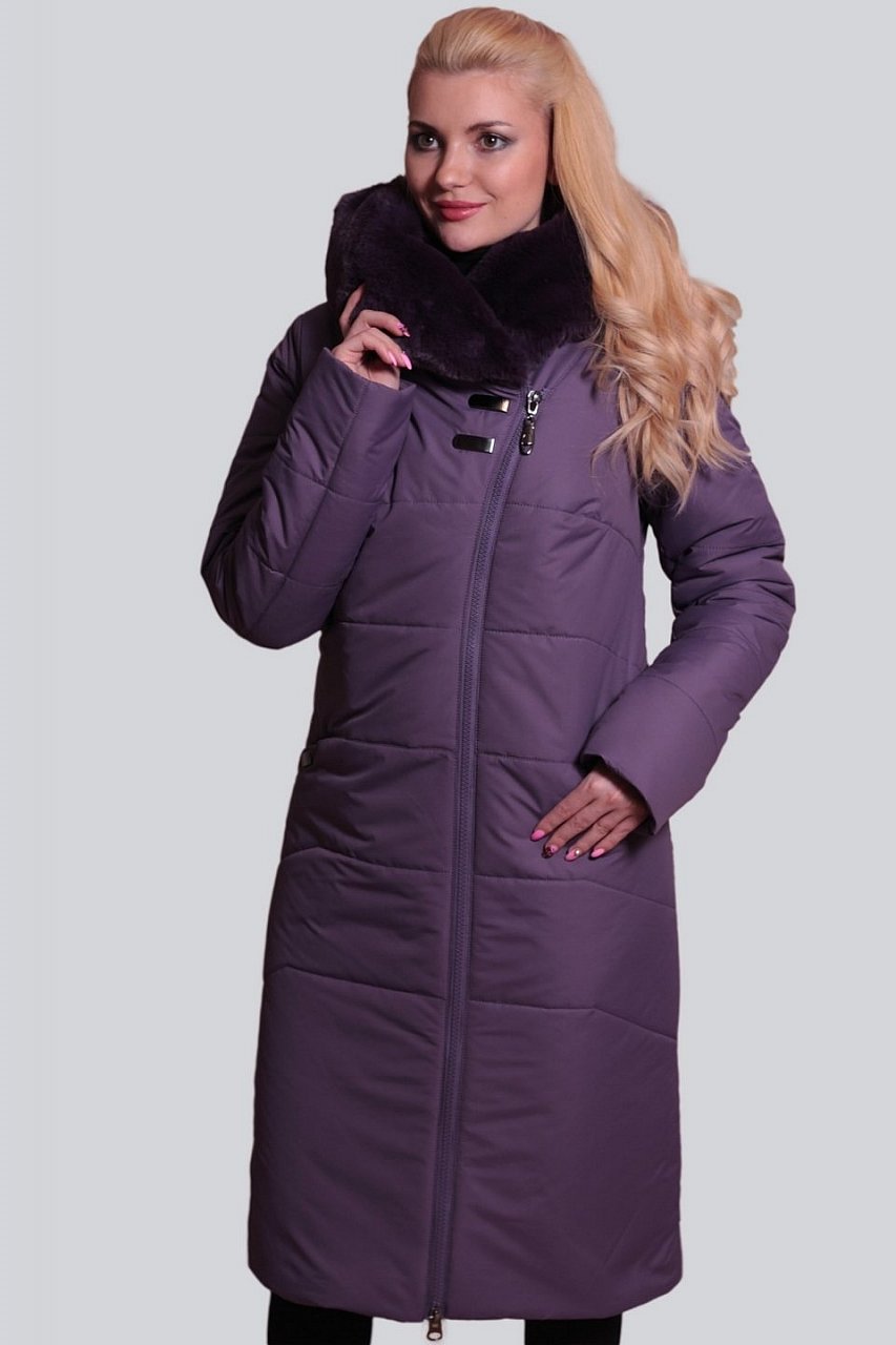 Теплое пальто удобного прямого силуэта с асимметричной застежкой на молнию. Объемный капюшон с широкой опушкой из искусственного меха будет хорошей защитой от холодных ветров. Карманы в шве полочки застегивются на кнопку. Утеплитель термофин, плотность 200+иглопробивное волокно 100. Термофин- это легкий синтетический материал, не вызывающий аллергии, хорошо сохраняющий тепло. Длина изделия 101 см, длина рукава 65 см. баклажан