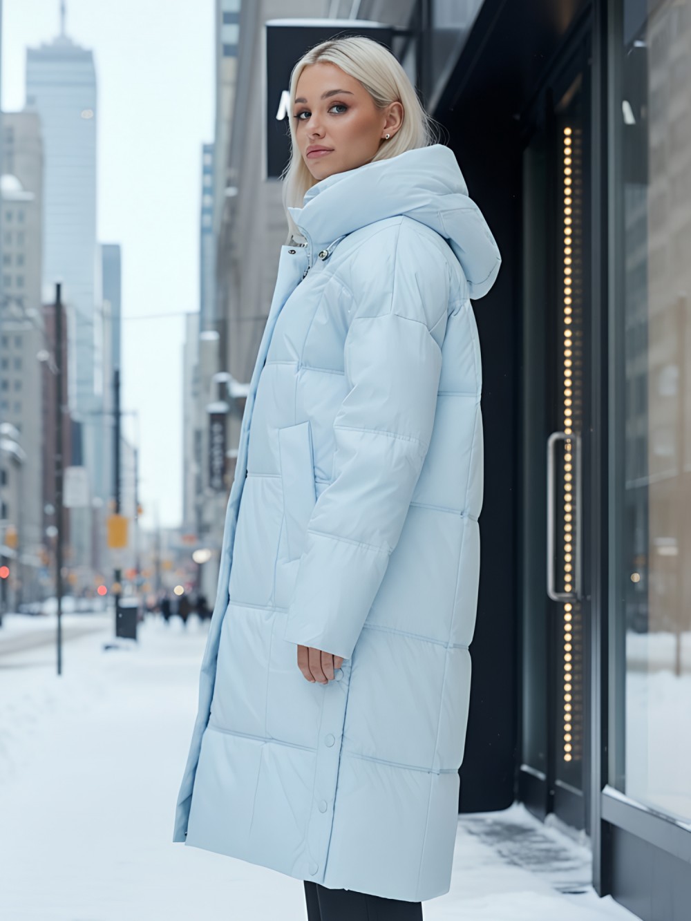— Длина до колена: Идеальная длина для защиты от холода и создания элегантного силуэта.
