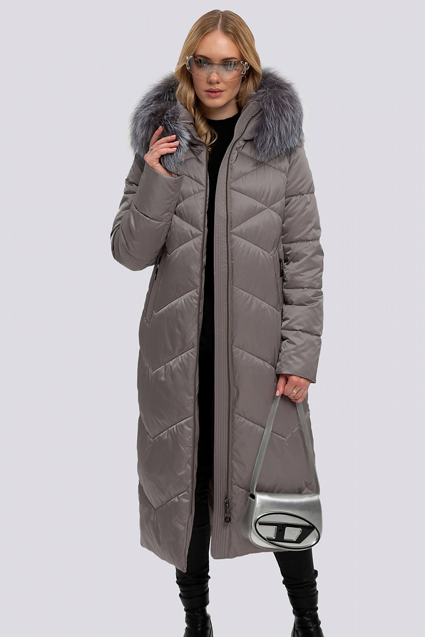 Пуховик, как часть образа, держится на пике популярности уже не первый год. В нем не только тепло, но и достаточно комфортно. Бренды все чаще выпускают новинки, которые больше близки к классическому стилю. Их плюс в том, что такие модели можно сочетать абсолютно с любыми вещами – юбками, платьями, брюками, а также грубыми ботинками. Так называемая база среди пуховиков. Наша модель умеренного объема, силуэт – прямой, слегка приталенный. Покрой рукава втачной, низ рукава с трикотажной манжетой. Застежка на молнию. Внутри капюшона воротник-стойка. Изделие достаточно длинное, чтобы согреть в морозную погоду. По боковым швам – разрезы, застегивающиеся на скрытую молнию, что позволяет регулировать ширину по линии низа. Комбинированные линии стежки, брендовая фурнитура делают модель достаточно оригинальной. Мех натуральный-чернобурка отстегивается. Утеплитель синтепух – синтетический пух, дополнительно на подкладке термофин, плотность 60. Температурный режим до -25. серый стальной