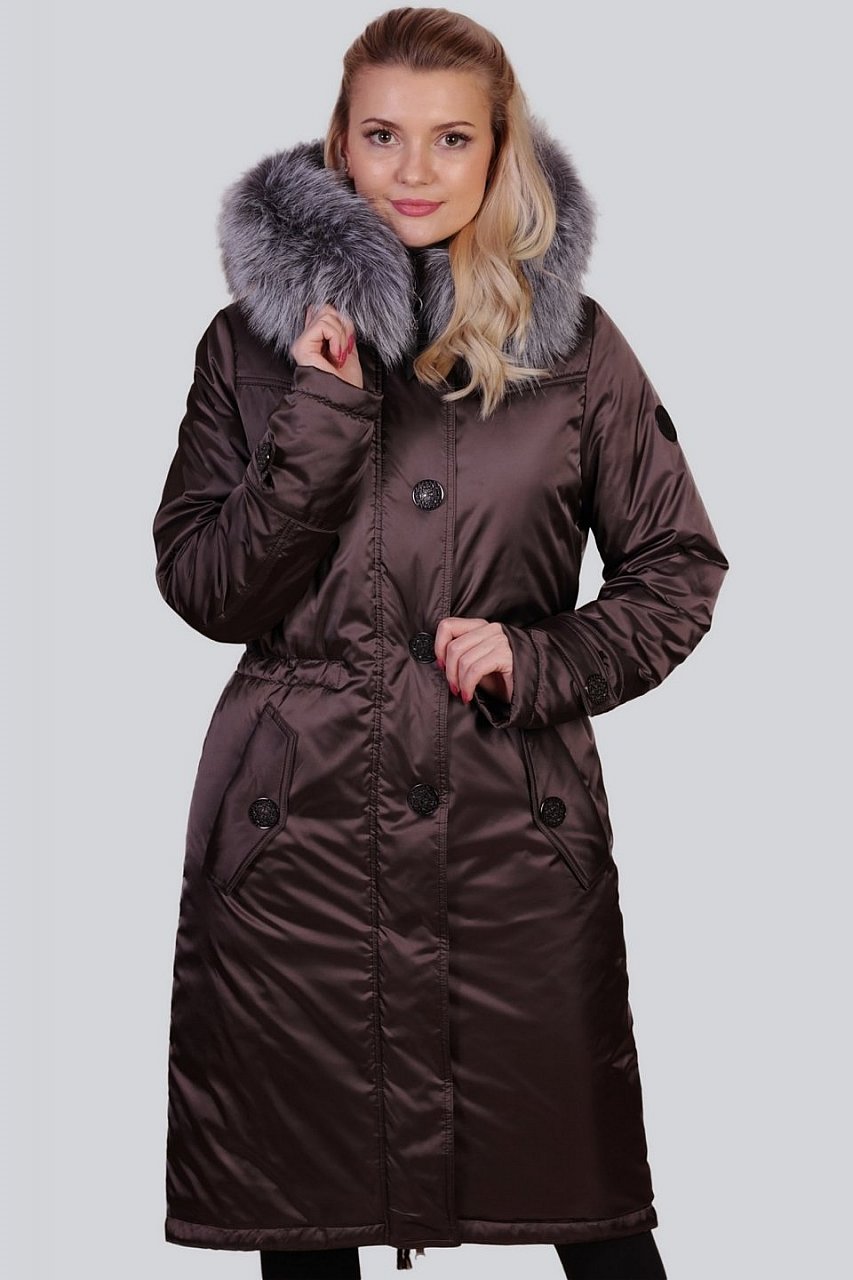 Самыми стильными моделями стали зимние пальто с утеплителем термофин, декорированные натуральным мехом чернобурки. Именно такой натуральный декор, по мнению модельеров, сегодня на пике популярности. Фаворитом этого сезона стали удлиненные парки. Такие модели могут стать альтернативой зимним пуховикам, особенно, если они имеют натуральный мех. Яркая по форме фурнитура отлично дополняет фасон. Стильно, роскошно, тепло! Длина изделия 103 см по спинке, передняя часть короче на 5 см. По линии талии и низа-кулиса. Застежка на молнию, закрытую планкой. Утеплитель термофин, плотность 300.
